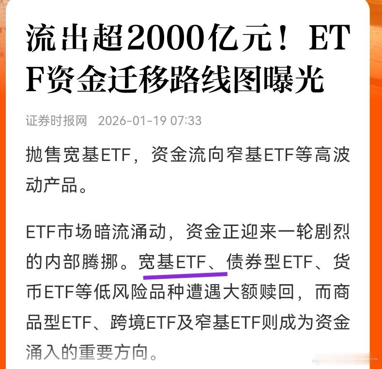 周末多个财经媒体报道了宽基流出的新闻,流出超2000亿。这种情况跟前年上证指数3000点以下时资金大幅度买入宽基一样,这是真正的机构资金,是短期不能大涨的信号之一。