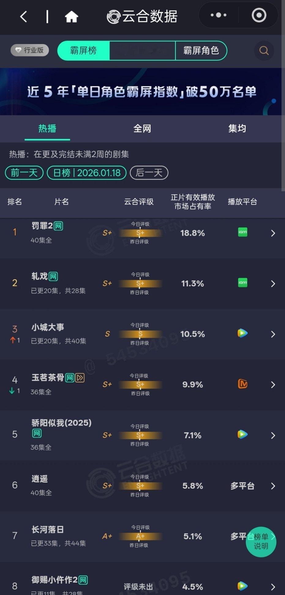 20260118罚罪2云合18.8% 评级继续右移第一名这个位置已经21天了就真的焊死了吧 加油罪子 好剧就是会有这样的长尾 剧集罚罪黄景瑜罚罪2