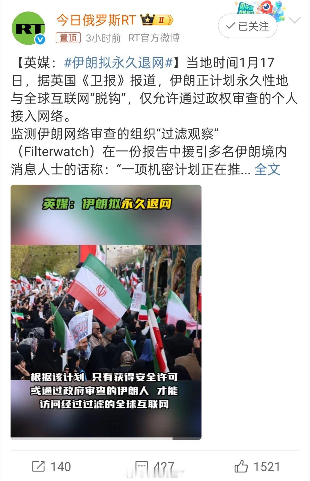 伊朗拟永久退网这是大昏招啊……本来伊朗的抗议者只是城市里面的部分人,还有很大一部分人是站在伊朗政府,教士团一边的。这一招退网直接把伊朗城乡所有的年轻人都推到对立面去了教员选集第一句话就是:谁是我们的敌人?谁是我们的朋友?这个问题是革命的首要问题。结果伊朗把朋友搞得少少的,把敌人搞得多多的……真要这么来一下子,伊朗内部真要不稳了