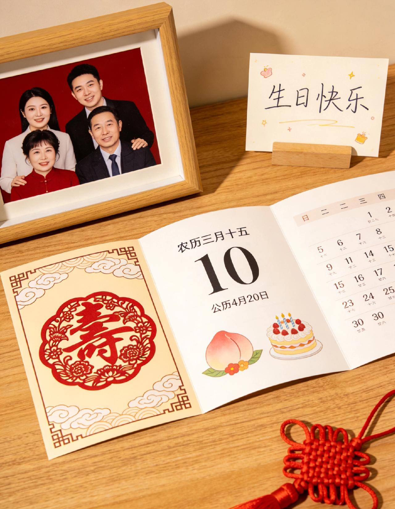 你过农历生日还是公历生日?这道题的答案,藏着中国人的情感密码 打开日历,你是否也曾对着两个生日日期犯愁?一边是身份证上清晰标注的公历数字,朋友同事默认的庆祝日;一边是父母长辈记挂的农历生辰,藏着生肖八字和家族传统。有人说“当然过公历,方便好记不折腾”,也有人坚持“农历才是正经生日,老祖宗的规矩不能丢”,这场争论背后,其实是传统与现代的温柔碰撞,更是中国人独有的情感羁绊。 先把道理说透:公历追着太阳走,地球绕太阳一圈就是一年,日期固定到每年都是同一天,身份证、学籍、职场福利全认它,堪称“社会通用款”。对打拼的年轻人来说,公历生日的优势太明显——不用查万年历换算,周末就能约上朋友聚餐开趴,社交属性拉满。而农历跟着月亮走,月相圆缺定月份,一年比公历少11天,所以得靠闰月补差,19年就有7个闰月,生日日期每年都“飘着”,却偏偏和春节、中秋这些传统节日同属一个体系,是长辈心中最正宗的“生辰”。 选择的背后,从来都是价值排序。过公历生日的人,过的是现代生活的便捷与热闹。工作忙、社交圈广,固定的日期能减少麻烦,商家的生日福利、社交软件的自动提醒,都让这一天充满仪式感。而执着于农历生日的人,守的是亲情的温度与文化的根。老一辈觉得,农历生日才关联着生辰八字,是家族血脉的纪念,一碗长寿面、几个煮鸡蛋,简单的仪式里全是传承下来的爱。就像很多家庭的默契:年轻人阳历约朋友狂欢,农历必回家陪父母吃顿家常饭,两边都不耽误,把实用与情怀都兼顾。 其实纠结的本质,是怕辜负——怕扫了长辈的兴,也怕少了朋友的热闹。但真正的智慧从来不是二选一:闰月出生的人可以一年过两次,一次陪家人,一次享社交;重视传统的可以以农历为主,公历简单庆祝;喜欢便捷的也能阳历为主,农历给父母打个电话报平安。19年一次的阴阳历生日重合日,更成了难得的纪念节点,让生日多了份独特的仪式感。 说到底,生日的核心从不是“哪一天”,而是“和谁过”“被谁记挂”。公历生日的热闹里,藏着现代生活的烟火气;农历生日的牵挂中,装着家人的深情厚谊。不用被“规矩”绑架,也不用纠结“谁更正宗”,怎么开心、怎么有意义就怎么来。 你家是过农历还是公历生日?有没有关于生日的特殊习俗或难忘故事?欢迎在评论区分享你的选择和理由!