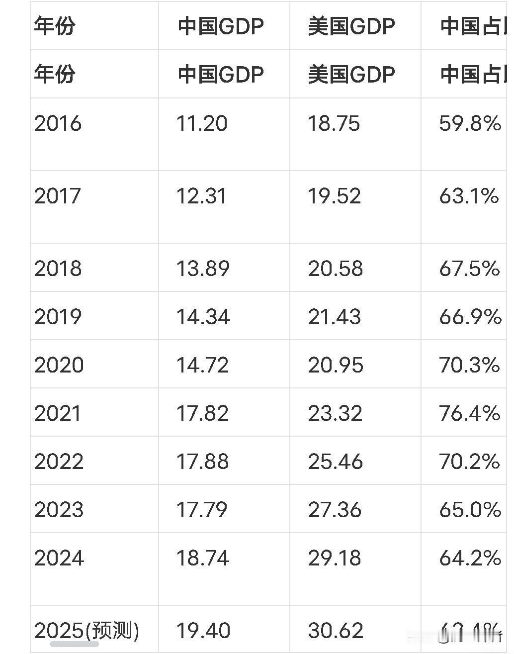 2025年中美GDP差距继续拉大,要感觉追赶美国遥遥无期了!难道世界第二大经济体又中了美国设计的收割圈套了吗? 2025年中国GDP达到19.63万亿美元。 2025年美国GDP约30.62万亿美元。