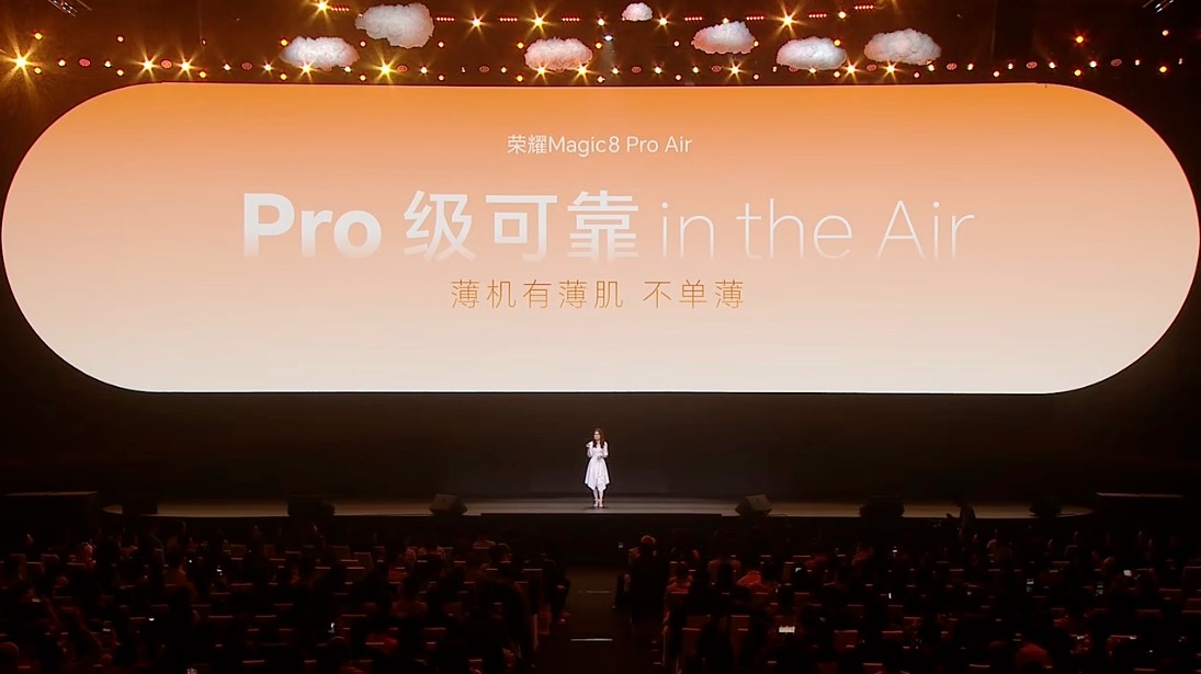 第一次见在手机上跳踢踏舞好家伙,荣耀发布会把新机折腾的有点狠啊,用3台荣耀Magic8 Pro Air搭建了一个小舞台,一个成年男人在上面跳踢踏舞。没想到手机居然顶住了,这可是155g、6.1mm极致轻薄手机,没想到居然这么可靠耐造。这次荣耀在这款轻薄手机上首发荣耀蝉翼架构,搭配航空铝一体化中框,极致轻薄中铸就 “金刚铁骨”。甚至让人感觉有点反常理了,这就是技术实力,荣耀在硬核技术方面确实有些东西,轻盈的Air旗舰抗弯折,从容应对瞬间冲击。
