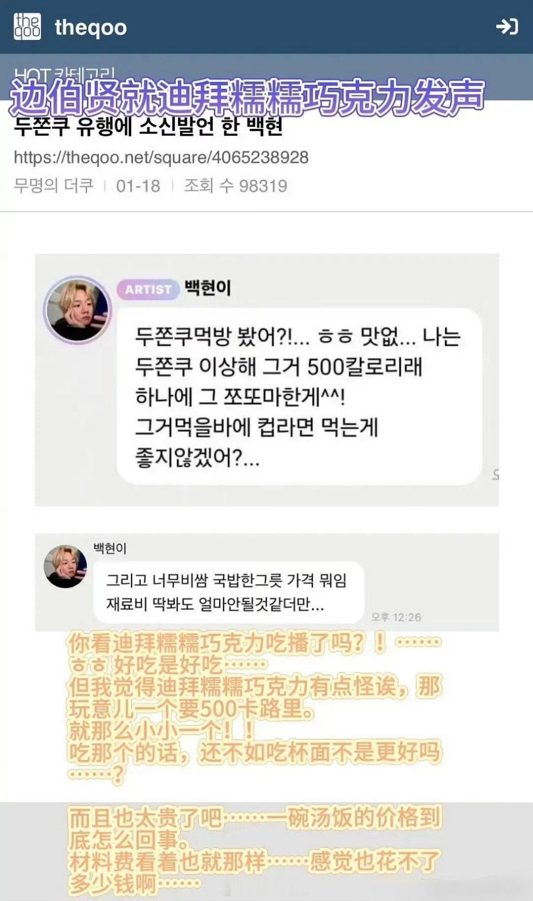 因为边伯贤说迪拜糯糯巧克力太贵了,结果就被外网网友怼了,一堆不好言论扑面而来,这