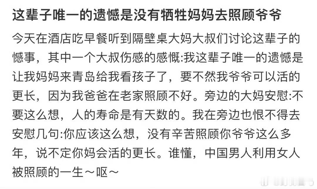 “唯一的遗憾是没有牺牲妈妈照顾爷爷” 遗憾怎么写最刀