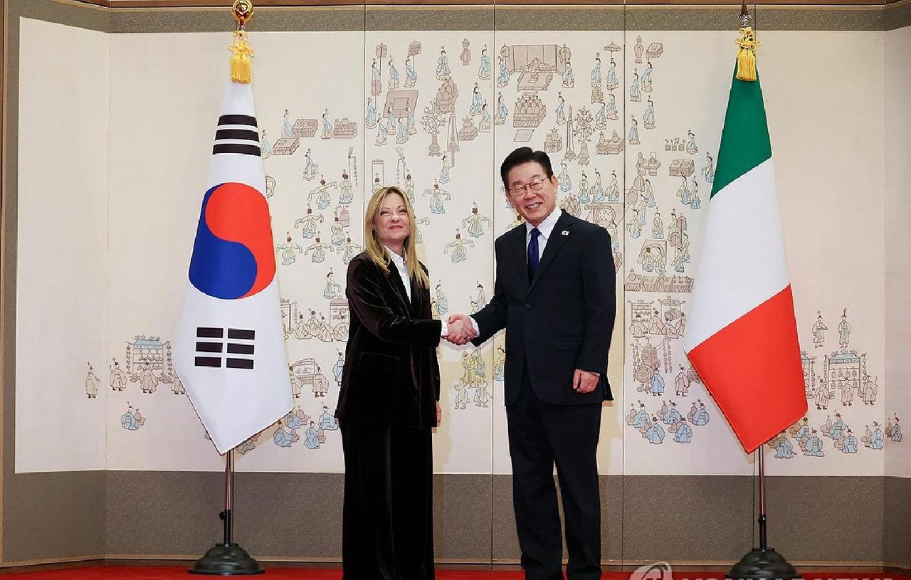 十九年!意大利总理梅洛尼刚踏进青瓦台,韩国网友就议论纷纷。 背后那幅《进宴图》复制壁画,百官朝贺的场面,像在演历史剧。 李在明西装笔挺,梅洛尼黑套装利落,可镜头扫过壁画时,评论区活跃起来。 AI、芯片合作备忘录签了一堆,但年轻人也关注着文化交流的细节。 外交礼仪的旧瓶,装得下新科技的酒吗?