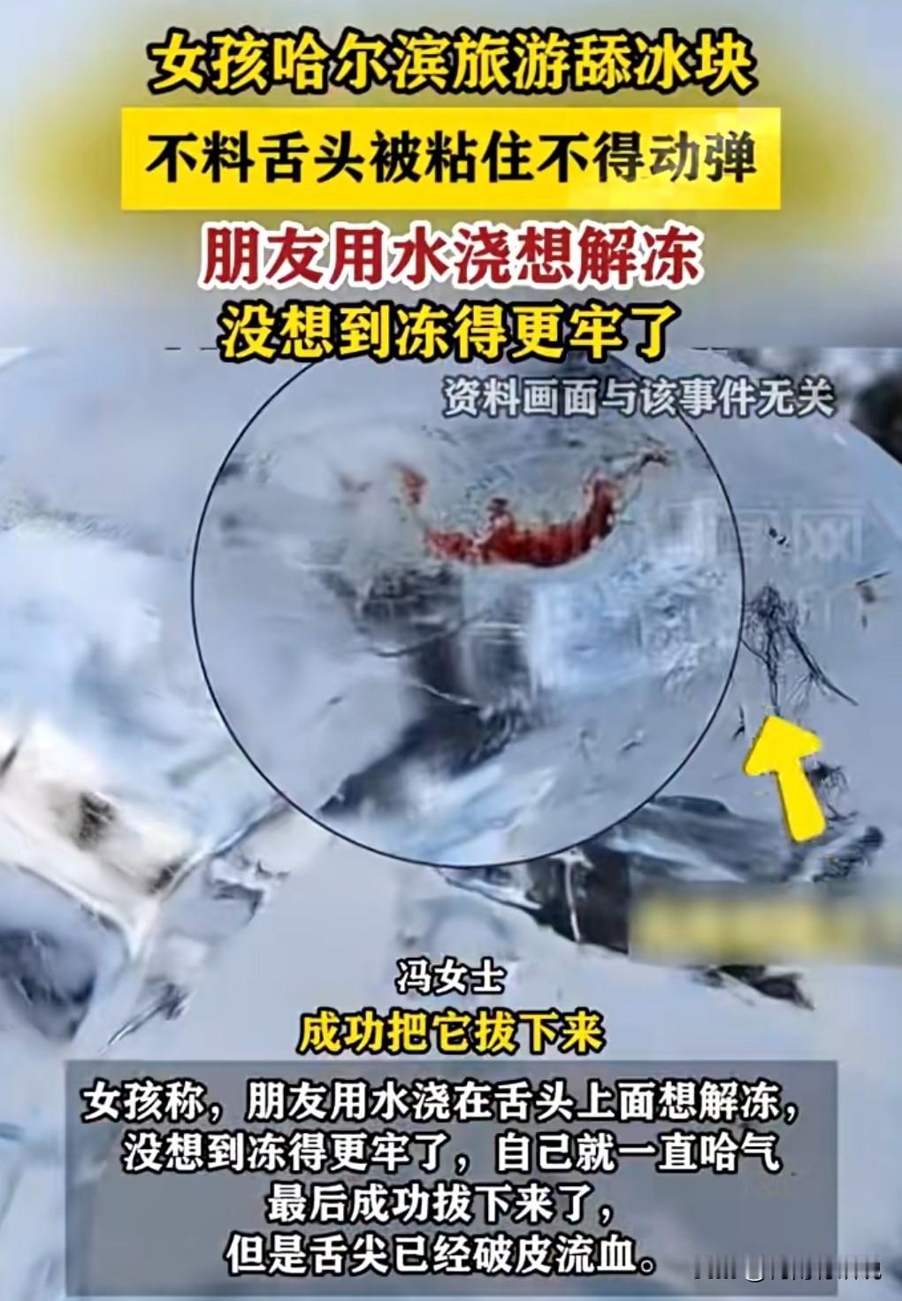 饭不能够吃的太饱,吃太饱就容易干一些无聊的事,1月18日,一名南方游客在哈尔滨舔冰块时舌头被粘住。 同伴尝试浇水反而加剧冻结,最终通过哈气融化冰块脱困,但舌尖已经破皮流血,所以说不要再干这种无聊的事了,在哈尔滨这么冷的地方舔冰块,这不是没事找事吗? 千万不要为了博眼球,而做出这种事情。 实在是非常的幼稚。
