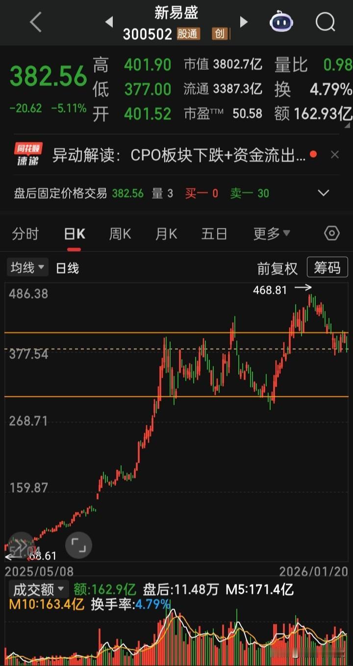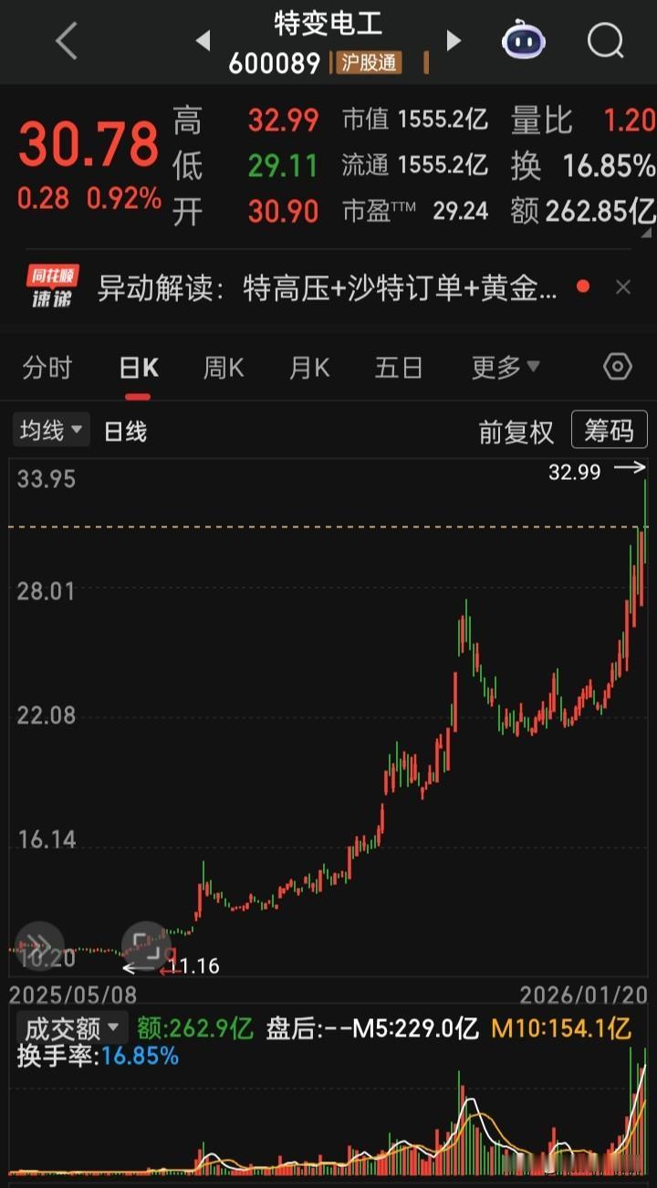 【每日观察,2026.01.20】在总成交额28041亿比上个交易日增量720亿、上涨2233家下跌3102家、涨停62家跌停23家的情况下,谁在成交额前十 特变电工262.85亿,涨0.92% 新易盛 162.93亿,跌5.11% 中际旭创154.51亿,跌3.39% 信维通信139.72亿,涨4.28% 海格通信136.41亿,跌6.70% 三花智控132.35亿,跌1.18% 金凤科技131.50亿,跌5.92% 蓝色光标127.91亿,涨5.14% 宁德时代124.67亿,涨0.20% 航天电子120.80亿,跌0.83%