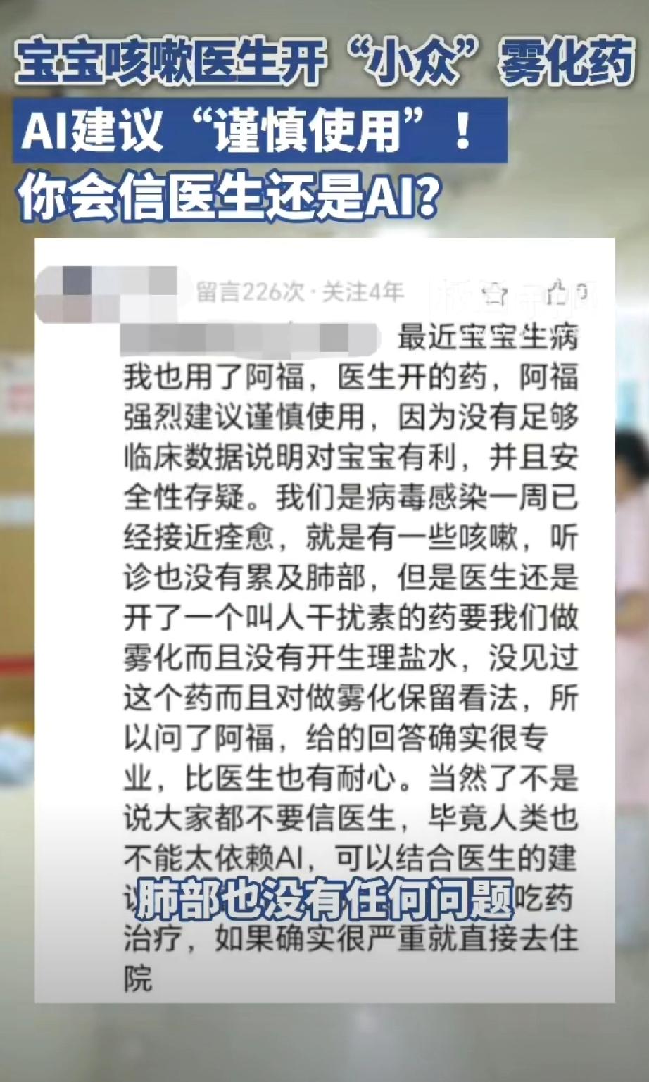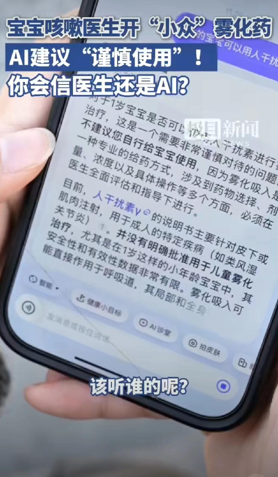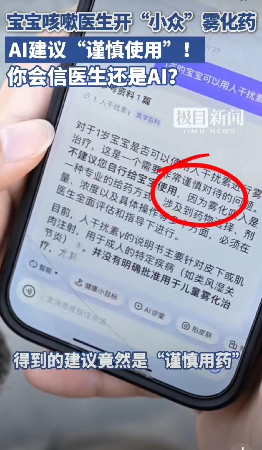 医生给1岁娃开小众药被AI提醒慎用。 这不挺好么?AI弥补求医过程中的信息差,很可能挽救了一个孩子。所以,我不理解为什么张文宏称拒绝将AI引入医院病历系统。 他说医生需要训练专业诊断能力,医生要先有能力鉴别AI的对错。我觉得双参考比单一信源更稳妥。 当然在他之前,马斯克说:“3 年后 AI 让所有医生失业,现在学医毫无意义”!我也不完全认同。AI介入医疗已经是大势所趋,但是3年内替代医生,我觉得还实现不了。ai医疗诊断 ai医疗评测 ai新药研发