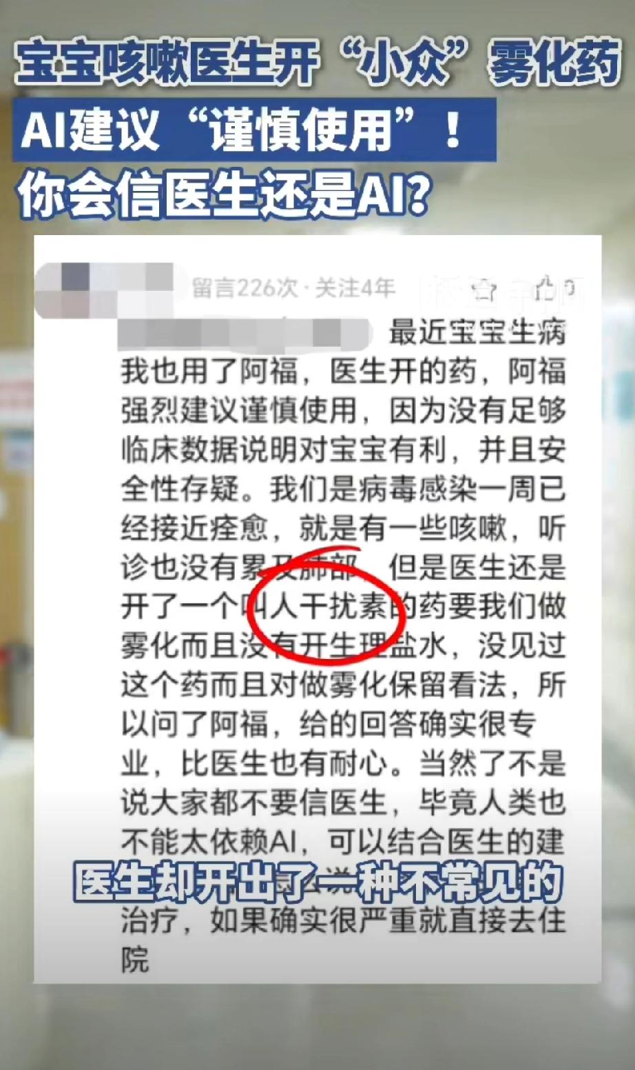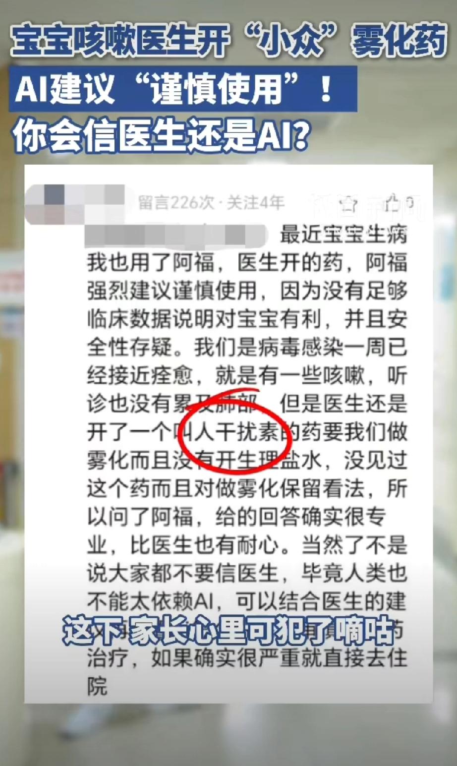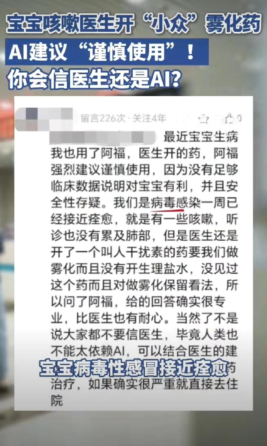 医生给1岁娃开小众药被AI提醒慎用。 这不挺好么?AI弥补求医过程中的信息差,很可能挽救了一个孩子。所以,我不理解为什么张文宏称拒绝将AI引入医院病历系统。 他说医生需要训练专业诊断能力,医生要先有能力鉴别AI的对错。我觉得双参考比单一信源更稳妥。 当然在他之前,马斯克说:“3 年后 AI 让所有医生失业,现在学医毫无意义”!我也不完全认同。AI介入医疗已经是大势所趋,但是3年内替代医生,我觉得还实现不了。ai医疗诊断 ai医疗评测 ai新药研发