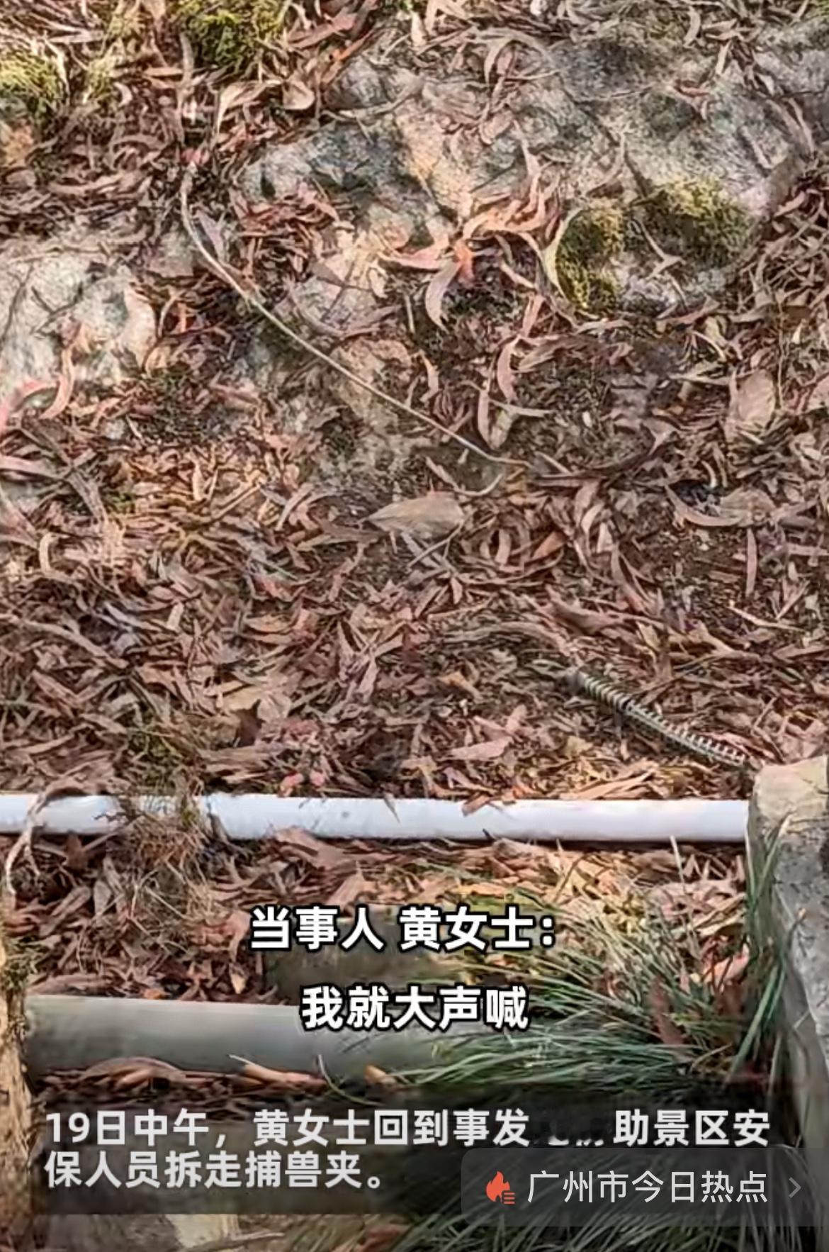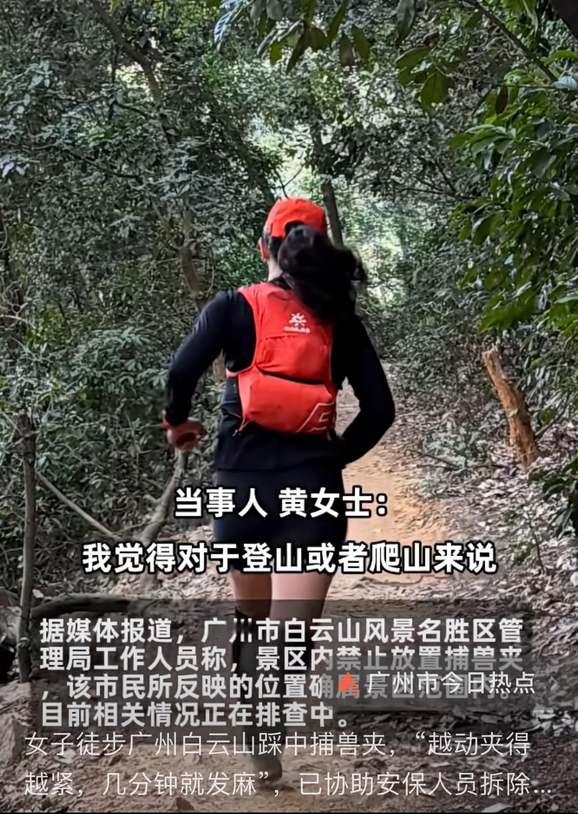 女子徒步广州白云山,误踩捕兽夹,这也太诡异了。事发1月18日,当事者黄某徒步白云山画猫路线,在一堆平常的枯叶下,脚踩到了捕兽夹。白云山没有大型野兽,哪里来的捕兽夹?看捕兽夹的铁丝,像是新做上去的,显然不是来捕捉野兽的,就是有人故意设置在这里,做坏事的,应该好好查一查,放置捕兽夹的人是谁,到底想干什么?溜达白云山 徒步登顶白云山