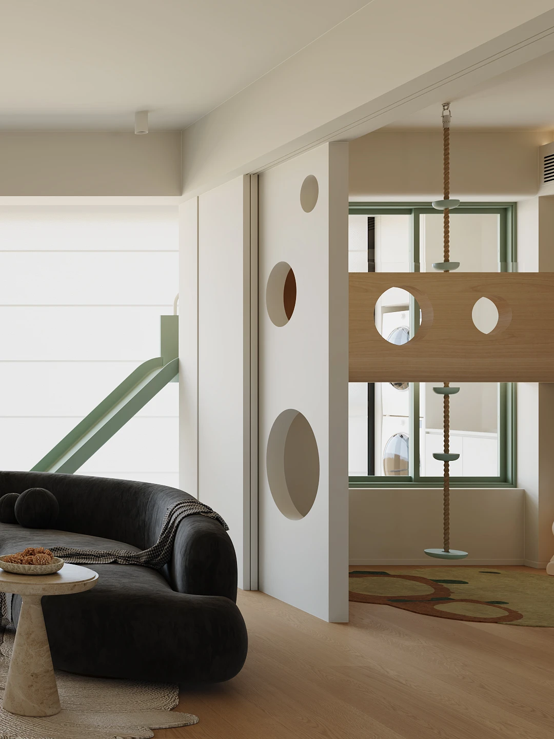 在阳台上做了一个好玩的滑梯,这样的家哪有小朋友不喜欢呢 现场木作+定制结合,让家里多出一个有意思的空间