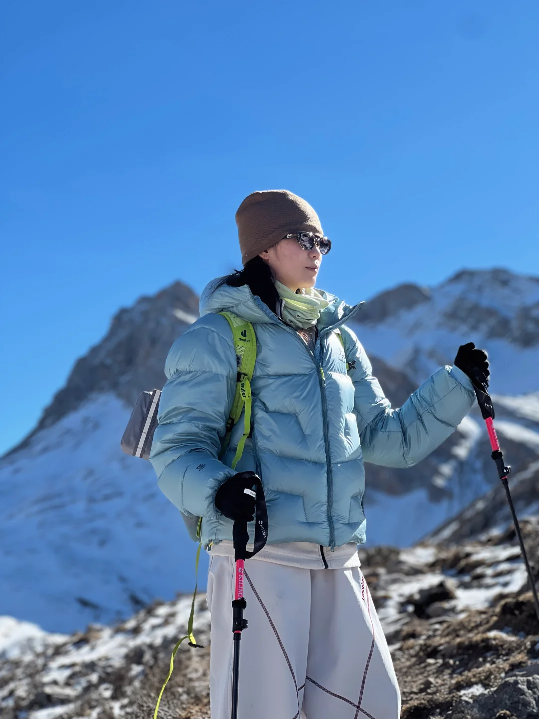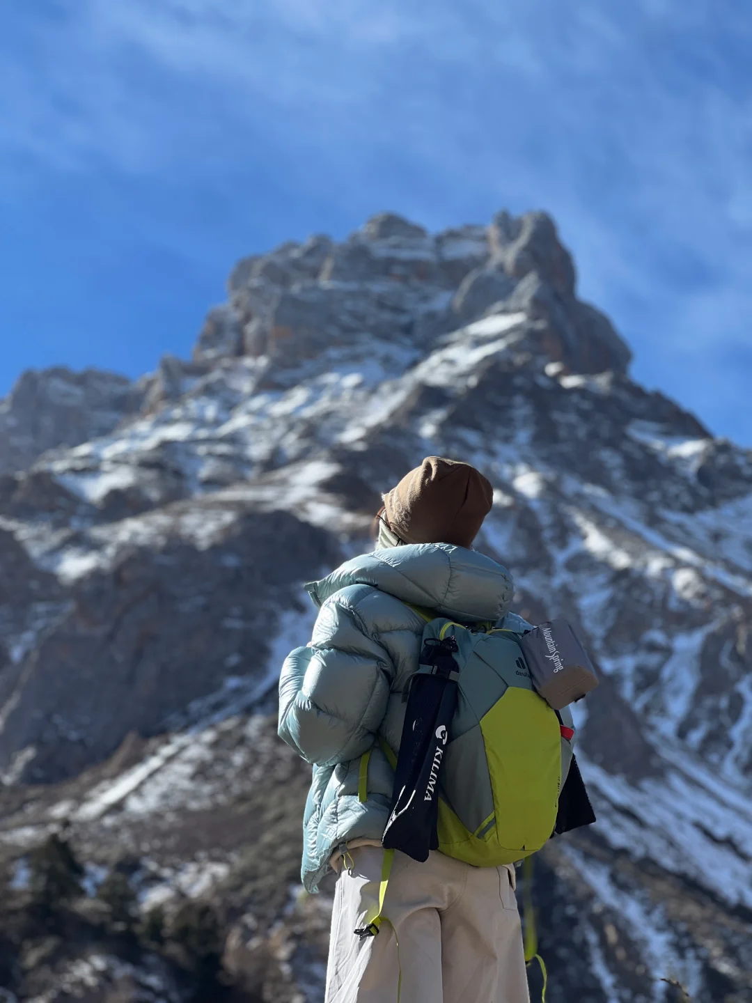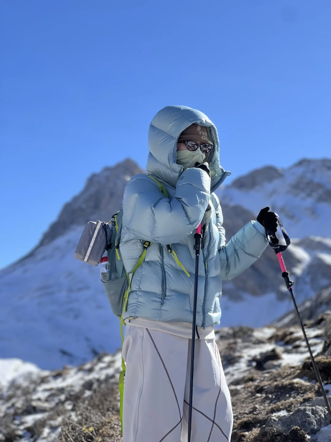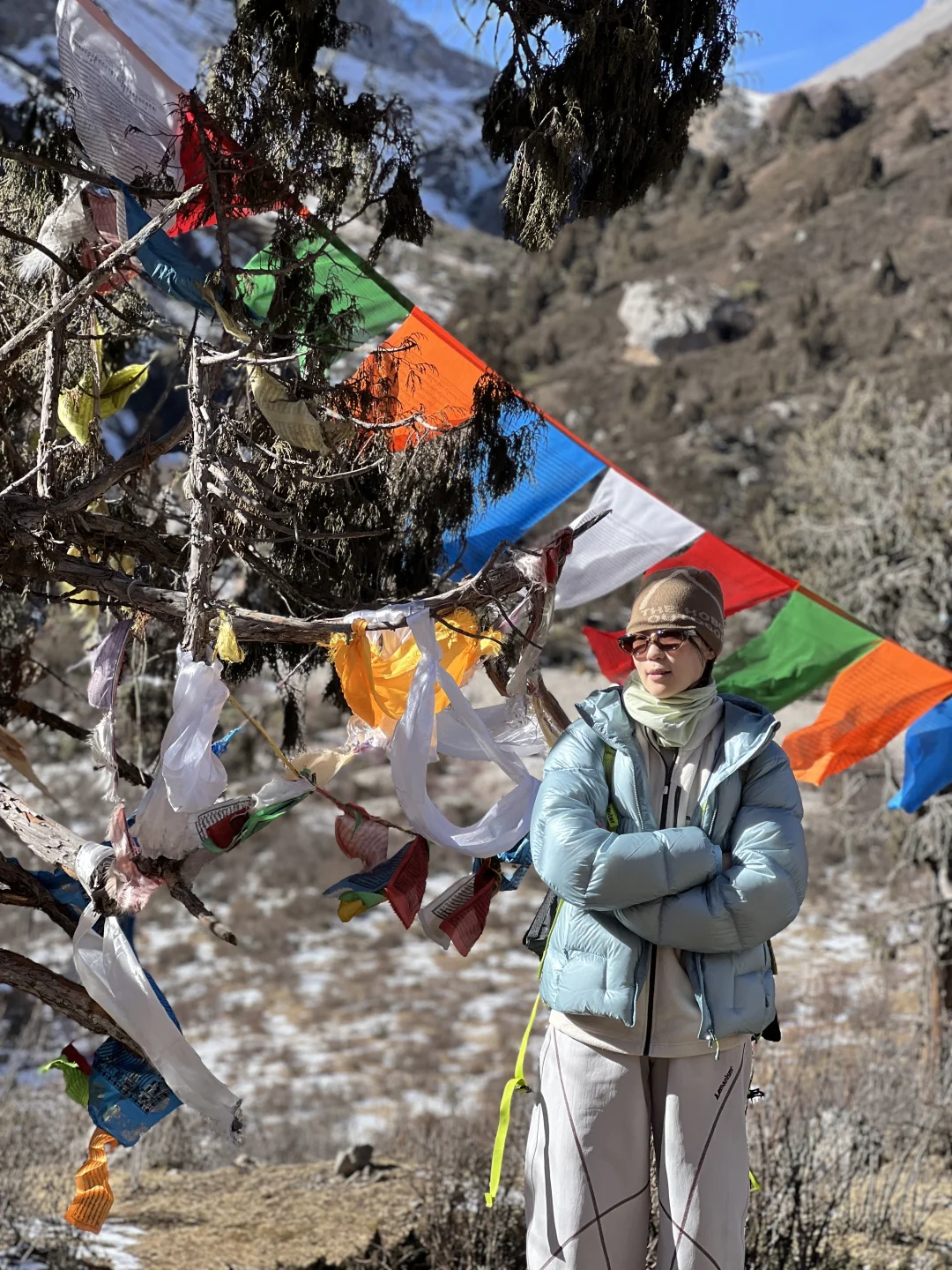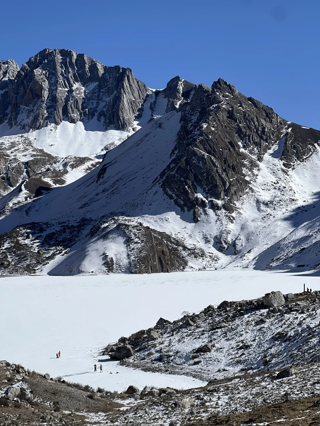 当日子过得呼吸都沾着匆促 索性躲进红星岩的山野里—— 把一身紧绷都卸在了进山的路上 【tips:成都坐一个多小时动车直达松潘站 出站直接包车到达徒步起点,回程也是同一辆车 徒步全程往返约7-8公里,含爬升约400米】 一路是凛冽却干净的风 迎面拂过时,把心底的烦闷也捎走了些 踩着山间野径,拨开肆意生长的枝杈, 偶尔弯腰捧起一抔新雪, 凉意顺着掌纹渗进去, 恍惚间像触到了这片山的脉搏 直到在四千米处遇见海子 寒风加剧了环境的低氧, 呼吸渐渐发紧,头也隐隐作痛, 却被眼前景象慑住了心神—— 昔日玻璃蓝的湖面静默成冰, 覆上厚厚的雪, 俨然一块巨大而寂静的宝石 我们小心踏上那片洁白, 足迹浅浅,像短暂存留的印记 阳光毫无遮拦地落下, 晃眼得仿佛伸手可触 我们多像远道而来的访客, 偶然闯入这片孤独的秘境 坐在湖边,感受这颗静谧星球 厚厚的羽绒服也挡不住寒意往骨子里渗, 心里却异常平静。 呼吸慢下来,节奏渐渐与山重合, 只剩风穿过冰面的低吟, 和那一刻渺小却清晰的安宁