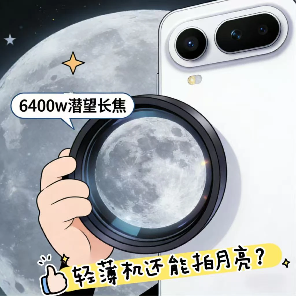 本以为苹果Air的问题,谁能想到被荣耀Magic8 Pro Air抢先一步 作为行业首个轻薄高清旗舰潜望长焦机型,6400w像素搭配3.2倍光学变焦,支持OIS防抖,手持拍月亮也能清晰还原环形山,5000w大底主摄+超广角组成全焦段阵容,日常拍风景、人像都能拿捏。 AI变焦五灯阵列更是夜拍神器,广角补光均匀、长焦精准聚光,再也不用为夜景人像黑脸发愁。
