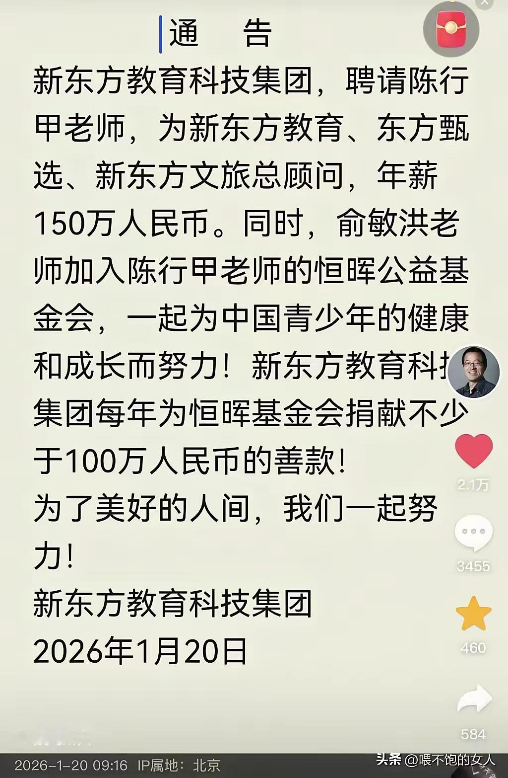 [吃瓜群众]陈行甲“70万年薪+交棒”的事,才成为热点,俞敏洪马上就来“互动”了——这是“高薪诚聘”吗?不,其实就是相互“抬轿子”炒作而已 [思考]说到底,他们都是类似欧美初代“白左”那种“看上去很好”的人物,而已[灵光一闪]