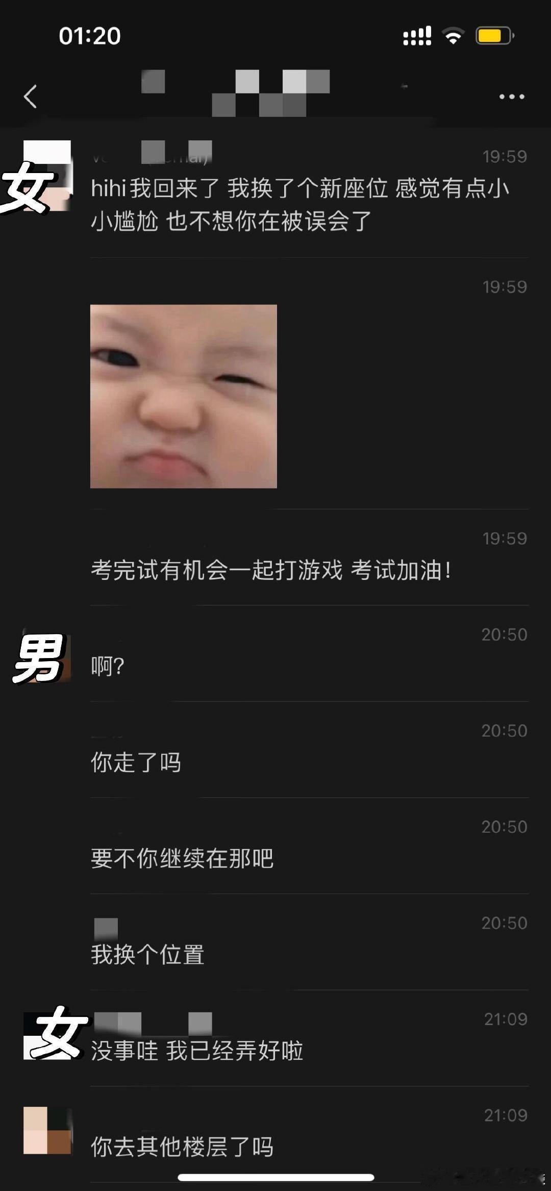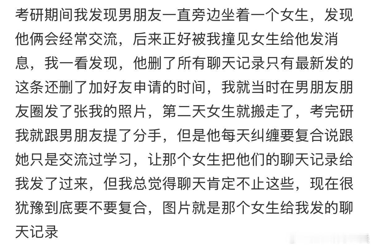 考研期间,我注意到男朋友旁边坐着一个女生,他们经常交流。