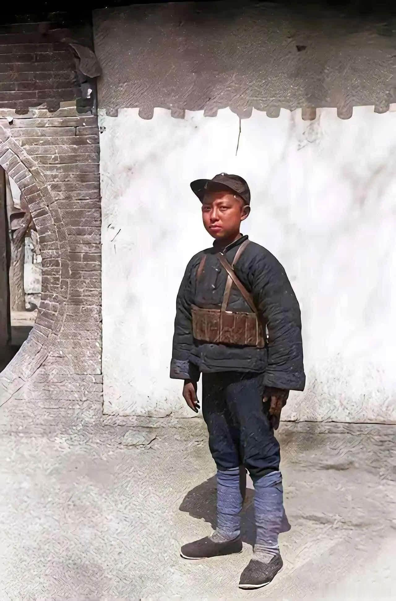 這張年紀小小卻展現出無畏的戰士形象的珍貴照片拍攝于1936年綏遠中,這孩子身穿棉軍服,頭戴軍帽,綁腿緊實,子彈袋掛在身上,顯得格外堅毅。-長期的風吹日曬使他的皮膚變得黝黑,但這并不影響他眼中的堅定。作為一名經歷過多次戰爭的老兵,他在晉綏軍的勝利中,收復了百靈廟等地,為粉碎日軍的囂張氣焰立下赫赫戰功。-他是娃娃兵中的一員,投身抗戰事業,承擔了多種任務,令人欽佩。從他的裝束和裝備來看,他是一名身經百戰的戰士,他的英勇和堅韌將永遠被銘記。历史