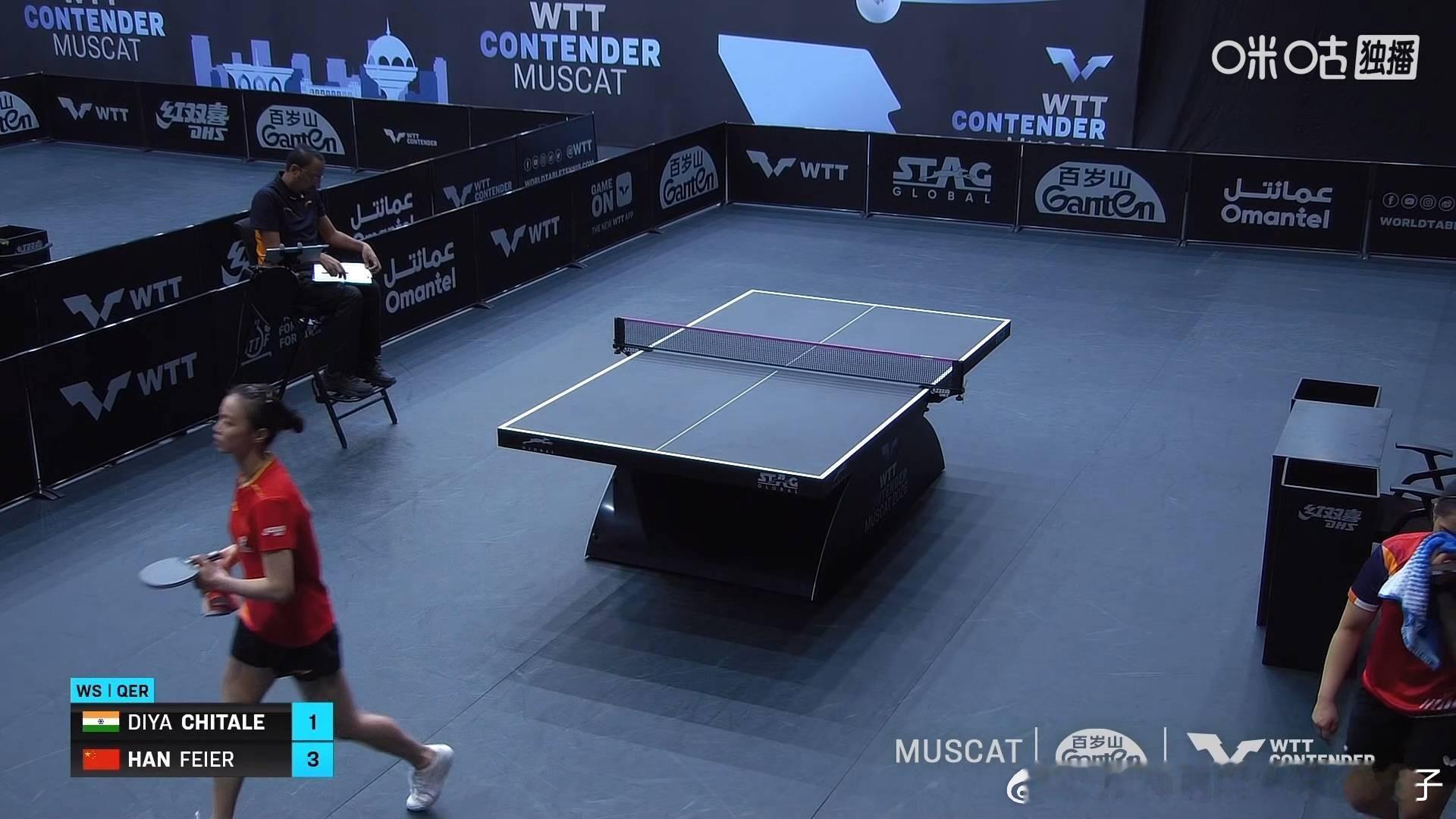 韩菲儿3比1奇塔莱(-7,3,10,4)晋级2026WTT马斯喀特常规挑战赛女单