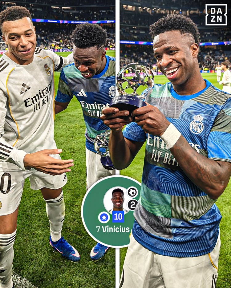比赛结束后,在维尼修斯凭借惊艳表现荣膺欧冠单场MVP后,姆巴佩是第一批上前祝贺他的球员之一。而在比赛开始前,伯纳乌球场还因球队近期在西甲和国王杯的表现,向几名皇马球员发出了零星嘘声,维尼修斯曾是被嘘得最严重的球员之一。