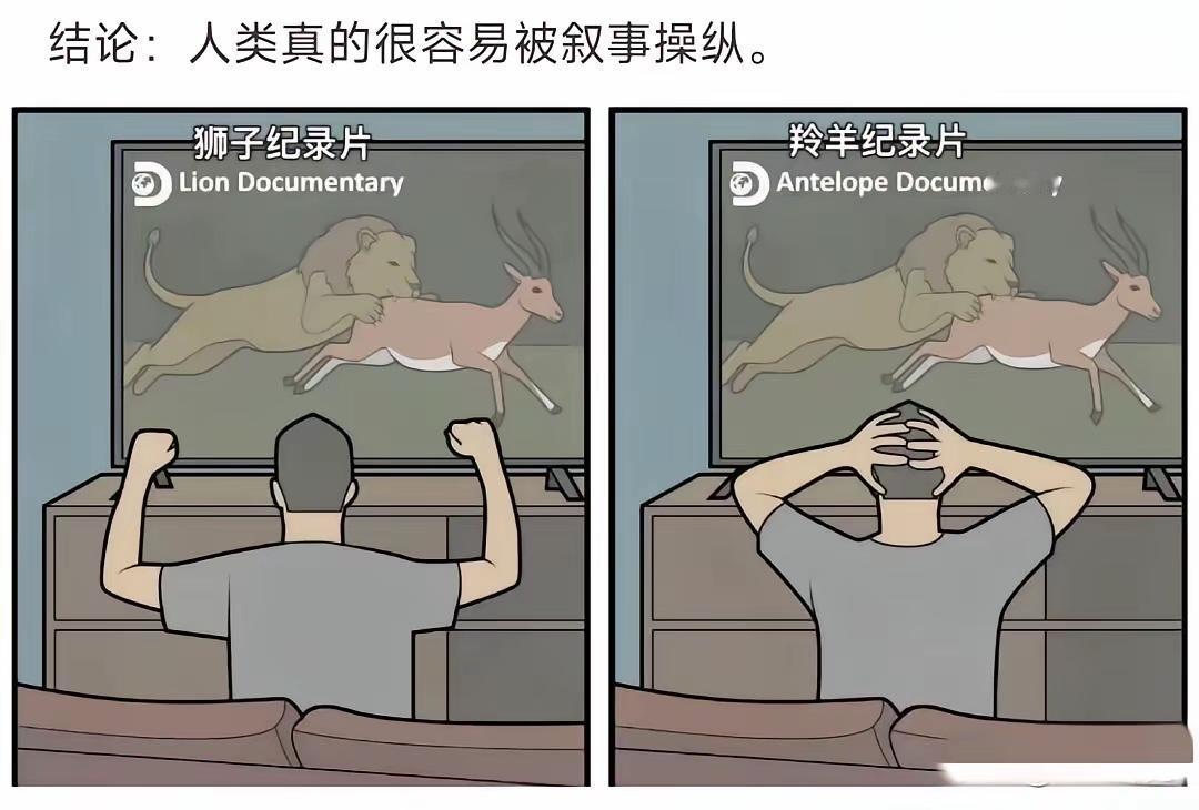 尼采曾言:这世界并无真相,唯有不同的角度。 观看动物纪录片时,情感着实会被立场左右。看狮子纪录片,目睹狮子一家老小多日未进食,内心满是焦急,恨不得它们立刻抓住羚羊以解饥饿之苦。在布封的笔下,狮子身形匀称协调,集力量与灵活于一身,本就是强者的象征,可它们也会面临饥饿的困境。 然而,看羚羊纪录片时,又会为羚羊一家的生存担忧不已。当看到羚羊被狮子捕获,心中满是失望与焦虑。甚至在有的纪录片中,饥饿的母狮抓住小羚羊,小羚羊一声“妈”竟能唤起狮子的母爱,使其不忍下口。这动物世界里的立场与情感,实在令人百感交集。 其实,这种情感被立场左右的现象,又何止存在于动物纪录片中呢?在人类社会里,立场同样深刻地影响着我们的认知与情感。 在历史的长河中,不同立场的人对同一事件的解读大相径庭。胜利者书写的历史,往往会美化自己的功绩,而失败者的声音则可能被淹没。 就像一场战争,战胜方会宣扬自己为正义而战,是为了保卫国家、守护人民;而战败方或许有着自己不得已的苦衷,他们也可能是为了捍卫某种信仰、传统。站在不同立场的人,对战争的感受和评判截然不同,有人为胜利欢呼,有人为失败悲泣。 在现实生活中的各种纷争里亦是如此。一场商业竞争,一方觉得自己是在合理合法地拓展市场,追求企业的发展;而另一方可能会认为对方是在恶意打压,破坏行业的生态。消费者也会因自身的利益和喜好,站在不同企业的立场上,为其摇旗呐喊或口诛笔伐。 尼采所说的“这世界并无真相,唯有不同的角度”,真是一针见血。立场就像一副有色眼镜,我们透过它去看待世界,看到的景象便染上了立场的色彩。但我们也应该明白,尝试跳出自己的立场,去理解他人的视角,才能更接近世界的全貌。