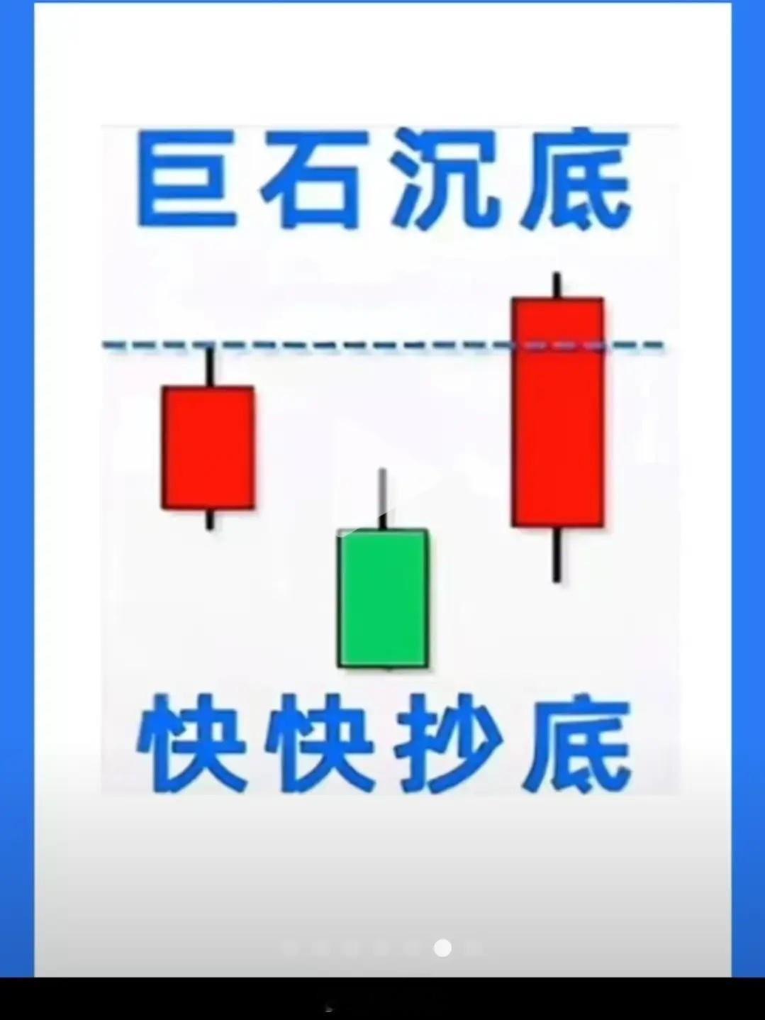 “巨石沉底,快快抄底”是A股中针对低位企稳反转的经典口诀,该形态属于超跌后的底部夯实信号,核心是股价经大幅下跌后,出现标志性的放量企稳K线,像巨石沉入水底不再下沉,预示抛压耗尽、多头开始反攻,是短线抄底的高效信号,以下是具体实战要点,帮你精准把握抄底时机。 一、巨石沉底的核心形态特征 该形态出现在个股大幅下跌后期(跌幅通常超30%),属于单根K线+量能的组合信号,形态特征清晰且辨识度高: 1. K线形态:收出一根实体较大的阳线(光头光脚阳最佳),也可以是带长下影线的阳十字星/锤子线,阳线实体需覆盖前3-5根阴线的一半以上,下影线越长,代表下方支撑越强。2. 量能特征:这根标志性K线必须放量,量能至少是前一日的1.5倍以上,且大于近期平均量能,放量代表场外抄底资金进场,与场内抛压完成换手,是底部资金承接的关键。3. 位置特征:股价处于历史低位、前期成交密集区、重要均线支撑位(如60/120日均线) 或整数关口,下跌趋势中出现连续阴跌后,突然出现该形态,而非下跌中途的反弹。4. 后续确认:形态出现后,次日股价不回踩跌破该K线的下影线低点,且能持续缩量企稳或小幅放量上涨,确认底部有效。 二、“快快抄底”的核心前提 该口诀的有效性并非绝对,抄底的关键在于确认抛压耗尽、资金承接有效,需满足以下条件,避免抄在“半山腰”: 1. 量能是核心:必须放量企稳,无量的阳线反弹只是“下跌中继”,大概率会继续下探;只有放量换手,才能形成真正的底部支撑。2. 趋势辅助:下跌趋势放缓,从“急跌”转为“阴跌”,K线实体逐步缩小,出现多次探底回升,说明下跌动能衰减,为巨石沉底形态铺垫基础。3. 支撑有效:形态K线的下影线触及关键支撑(如前期低点、黄金分割位、均线),且支撑位未被有效跌破,代表市场认可该价位的价值。4. 大盘环境:避开大盘系统性下跌阶段,在大盘企稳震荡时,个股的巨石沉底信号更可靠;若大盘持续走弱,个股易被拖累,形态失效概率高。 三、实战抄底策略 1. 精准介入点 激进型:形态出现当日,尾盘确认放量阳线成立,且股价站稳形态K线实体一半以上,轻仓试错(仓位不超过2成)。稳健型:形态出现后,次日股价回踩不破形态K线下影线低点,且收出小阳线/十字星缩量企稳,此时加仓抄底(总仓位不超过4成)。确认型:形态出现后3个交易日内,股价放量突破形态K线的高点,说明反转趋势确立,可继续加仓。 2. 止损与止盈设置 止损位:严格设置在巨石沉底K线下影线低点下方3%,若跌破,说明底部支撑失效,是假底信号,果断止损离场,避免深套。止盈位:短线:第一目标位看前期下跌过程中的反弹压力位(如最近的跳空缺口、5/10日均线),获利10%-15%可部分止盈;中线:若突破压力位且量能持续,可看至60日均线,或参考跌幅的30%-50%回撤位。 四、易混淆形态与避坑要点 1. 区别于下跌中继阳线下跌中继的阳线通常无量,且实体较小,无法覆盖前期阴线,次日便继续下跌;而巨石沉底是放量长阳,后续能持续企稳,二者核心差异在量能和后续走势确认。2. 避开假底信号高位下跌初期出现的放量阳线,不是巨石沉底,而是主力诱多出货,坚决不抄; 形态出现后,次日放量跌破下影线低点,属于“假企稳”,及时止损;3. 仓位控制是关键巨石沉底属于短线抄底形态,不可满仓操作,因为超跌股可能存在二次探底的情况,分仓介入既能把握机会,也能控制风险。 五、口诀本质总结 “巨石沉底,快快抄底”的核心逻辑是超跌后放量换手+资金承接有效,该形态的本质是下跌趋势的阶段性终结,而非长期反转。抄底的核心不是“快”,而是“准”——先确认量能、位置、支撑三大核心要素,再结合后续走势分批介入,同时严格设置止损,才能让抄底更安全。 简单来说,巨石沉底是“跌透了、有人接了、撑住了”的信号,满足条件时抄底胜率较高,但切记超跌股反弹易反复,不可贪心恋战。