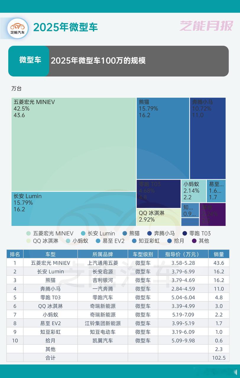 2025 年微型和小型纯电市场增长迅猛,合计销量规模可观,精准匹配了低价刚需的电动化出行需求。微型纯电主打极致代步,工具属性拉满,价格集中在低区间,五菱宏光 MINIEV 一家独大,品牌集中度极高,配置仅满足基础需求,2026 补贴调整或将影响这个市场的销量走势。小型纯电则进入产品力竞争阶段,价格带有所上移,用户对安全、空间、续航和智能化要求更高,吉利星愿成新晋爆款,比亚迪多款车型稳量,各品牌都在靠产品力比拼,五菱体系也在这个赛道完成了产品分层布局,整体仍是刚需市场,主打年轻群体的用车需求。