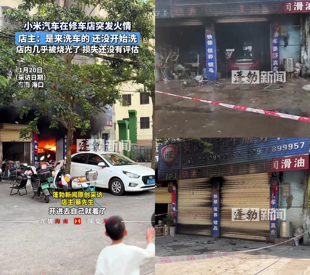 海口小米汽车进洗车店没碰水就自燃了。 车主开进去打算洗车,刚停稳还没动手,