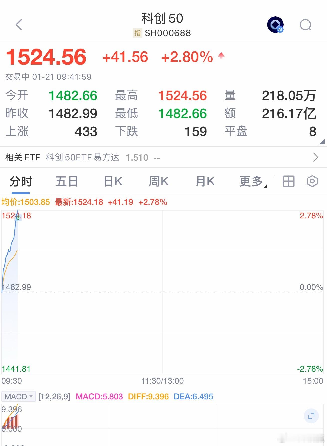 我刚刚在新浪基金上买入了易方达上证科创50ETF联接C(011609),你觉得这