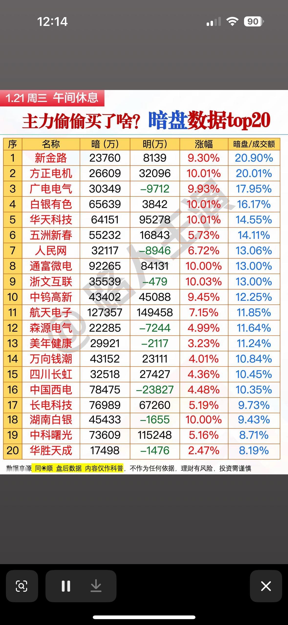 主力偷偷买入的20只股票,暗盘数据大揭秘!