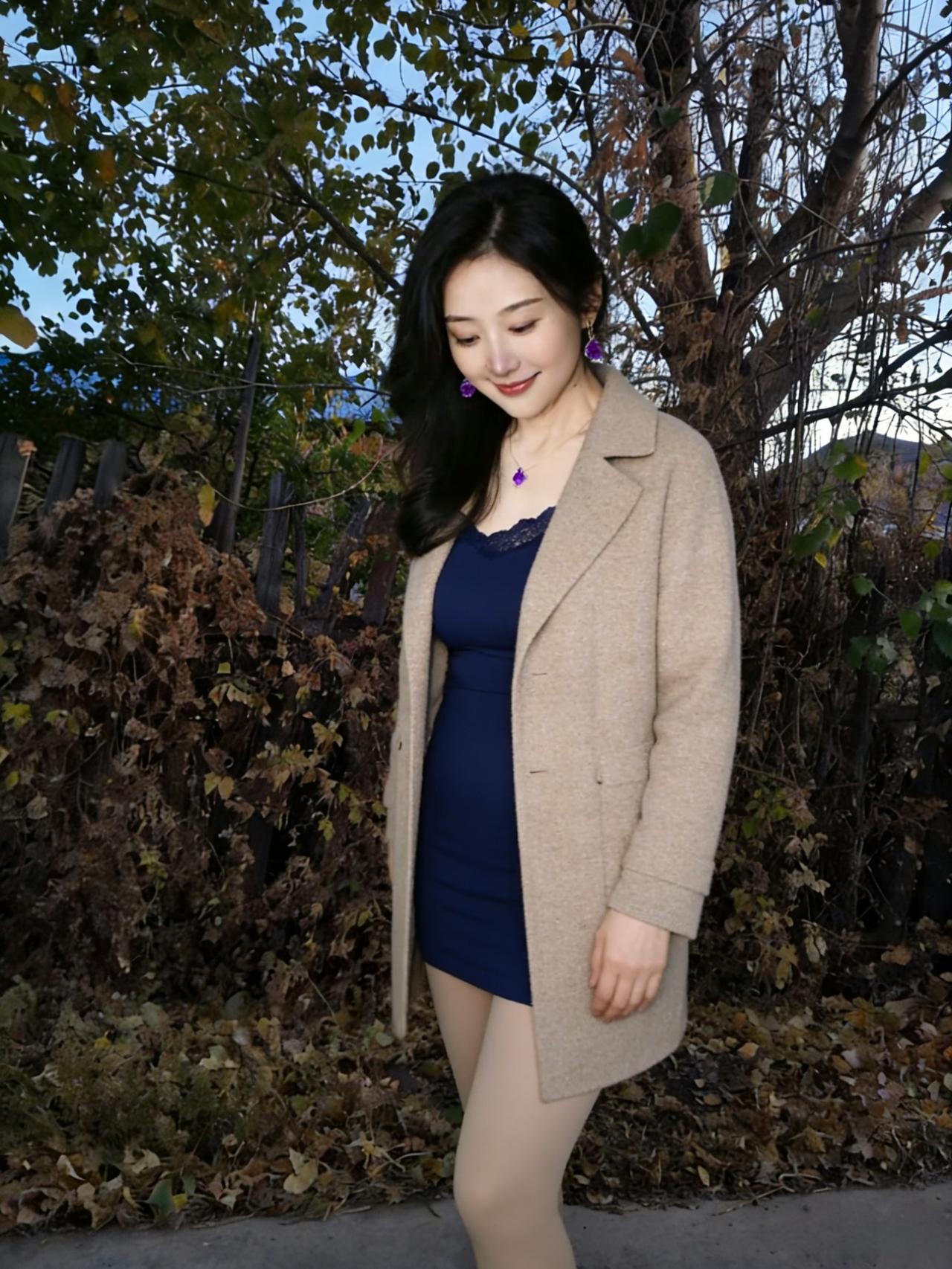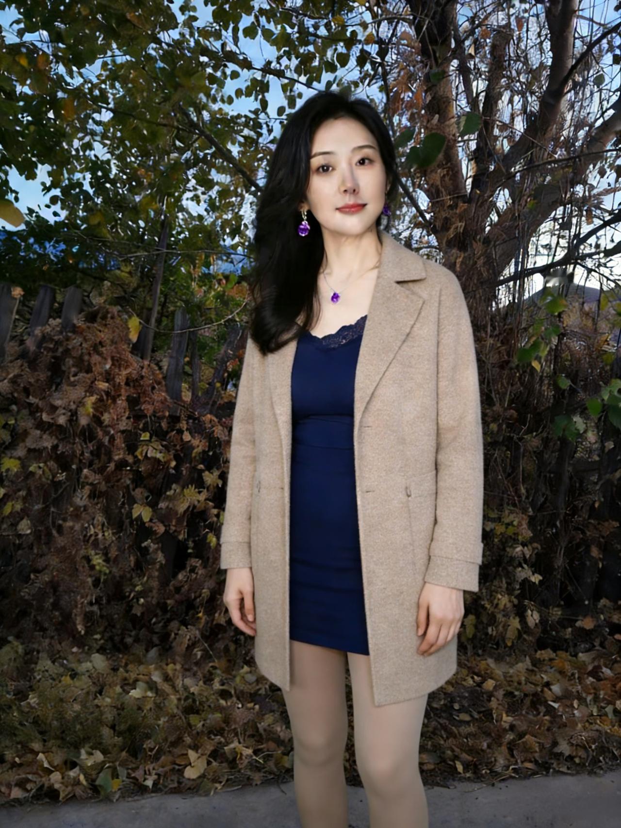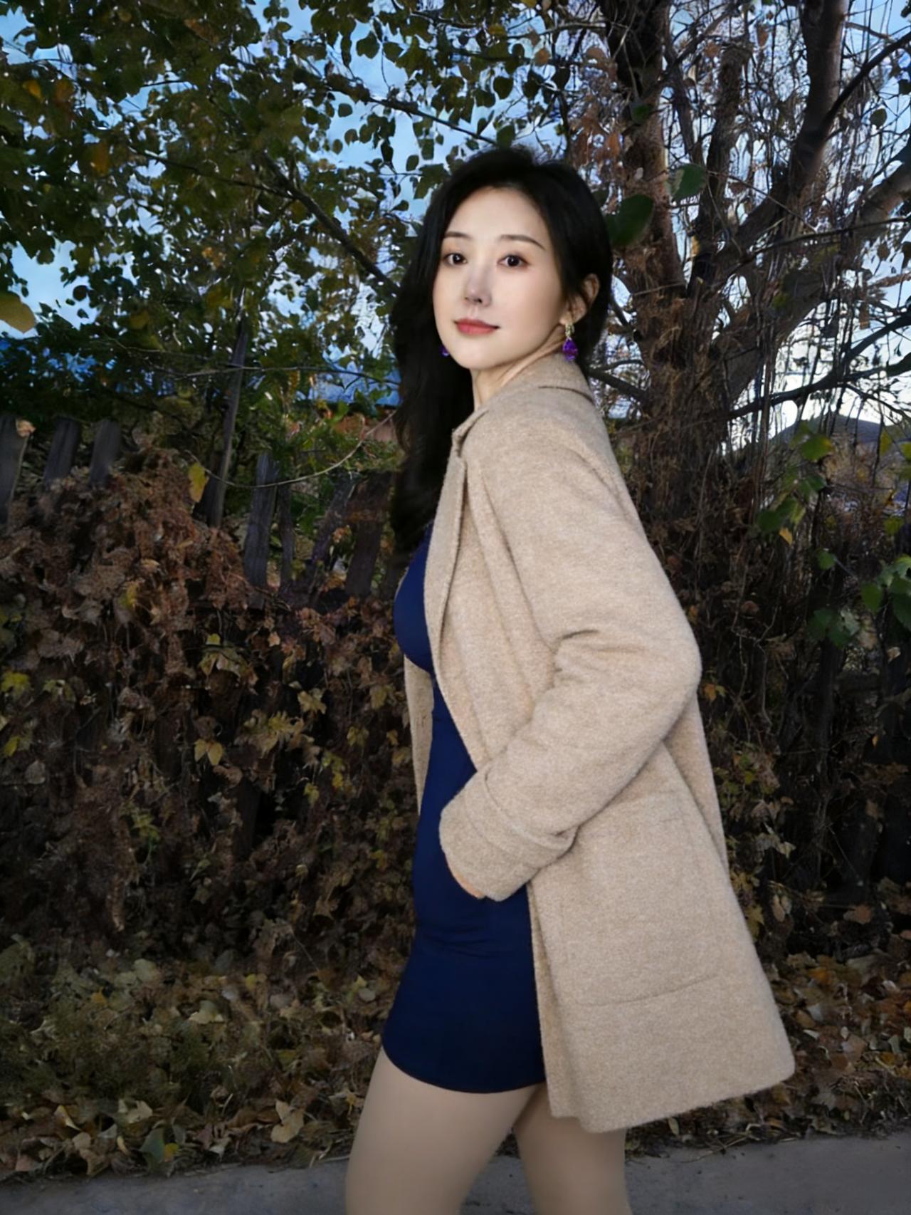 她立在枯枝与落叶间 目光里盛着整个季节的静美