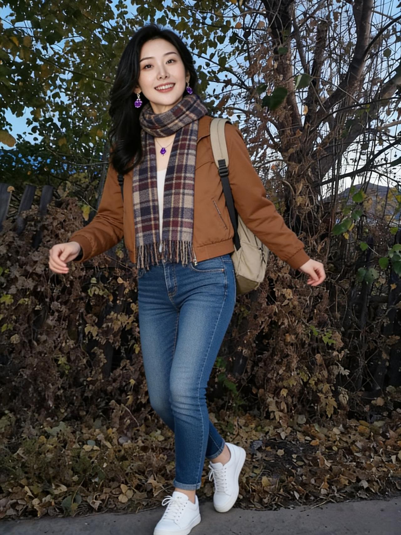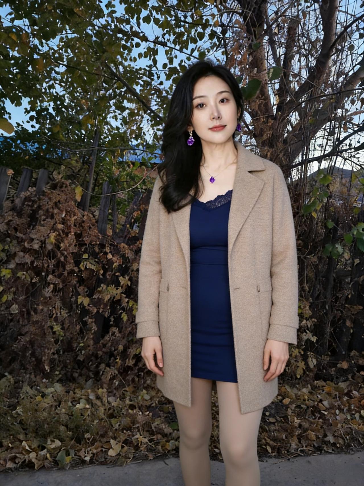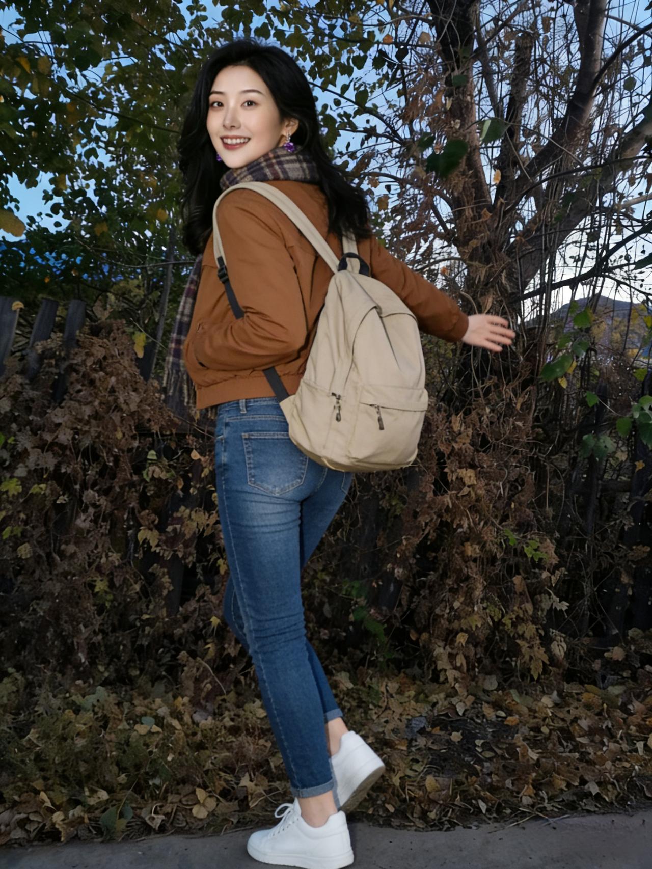 她立在枯枝与落叶间 目光里盛着整个季节的静美