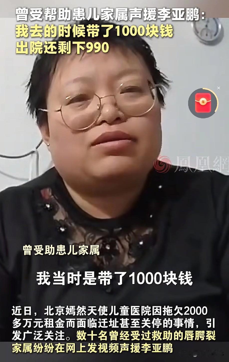 李亚鹏做慈善演都不演了、病人带1000元来看病手术做完出院还剩990元,用的十元是买水果的。 [福]据一位儿童妈妈介绍说在2013年他们在这家医院做手术,费用全免,一天三餐包吃,晚上还有夜宵,来的时候就打了车票,带了一千元,就用了10元。听后来的病人家属说到2023年嫣然天使医院只提供了早餐,那个时候李亚鹏应该是最困难的时候吧!真的是越扒白料越多呀,越扒泪崩的事越多,这样的医院不能到,你们说呢!