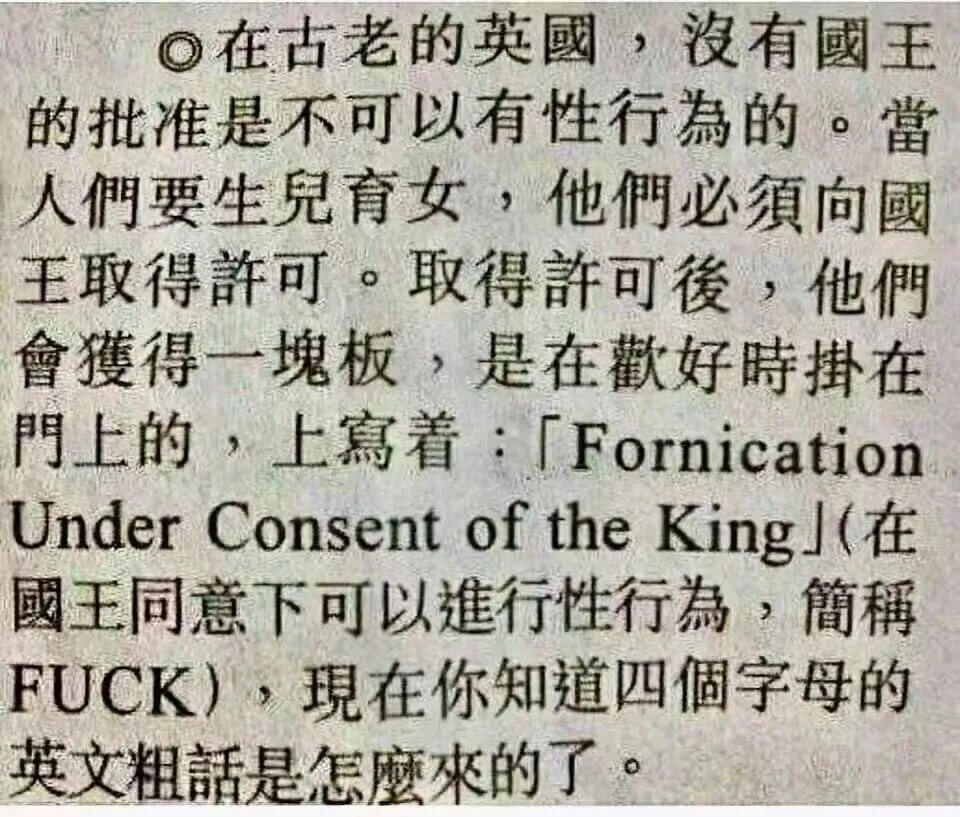 英语F.U.C.K的来源, 这是真的吗? 也太搞笑了吧。