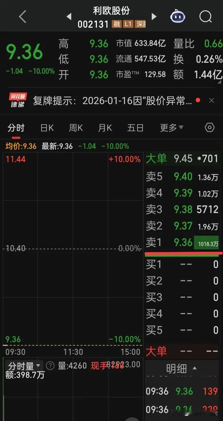 【年内首只一字跌停巨大封单】 开盘就一字跌停封单862.1万手 开盘6分钟就封单达到1018.3万手 收盘封单达到1157.9万手 自2025年12月31日至2026年1月15日,这十个交易日内上涨102.73%,成交922.8亿,换手215.12% 你认为,后续向下还有几板?