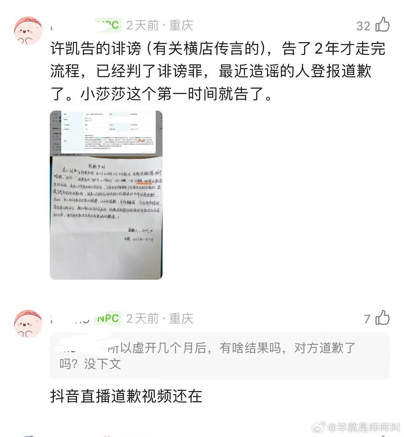 许荔莎说从来没有道歉过