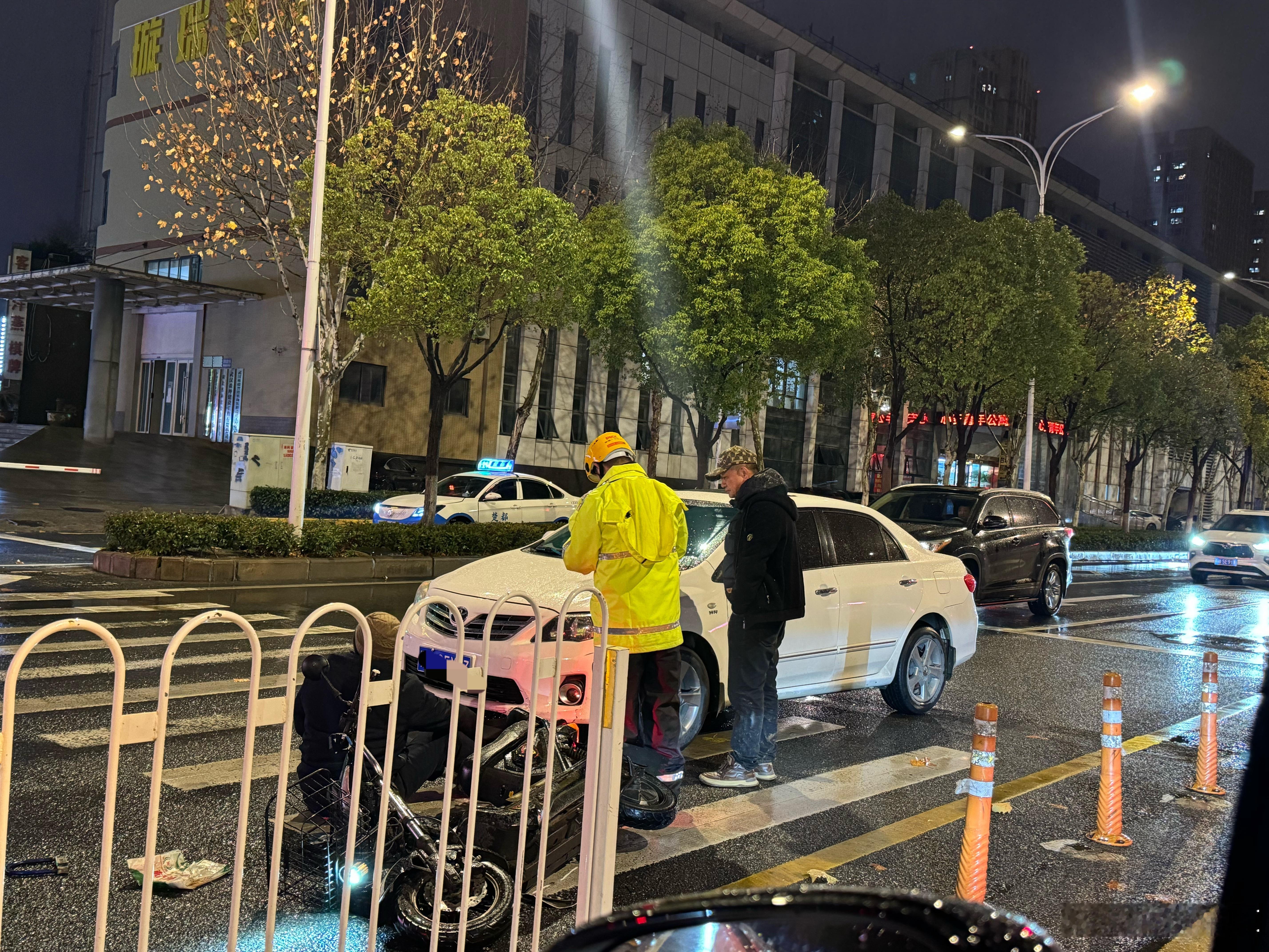 下雨天开车一定要慢行!!!像这种斑马线上即便行人闯红绿灯出现交通事故基本都会划