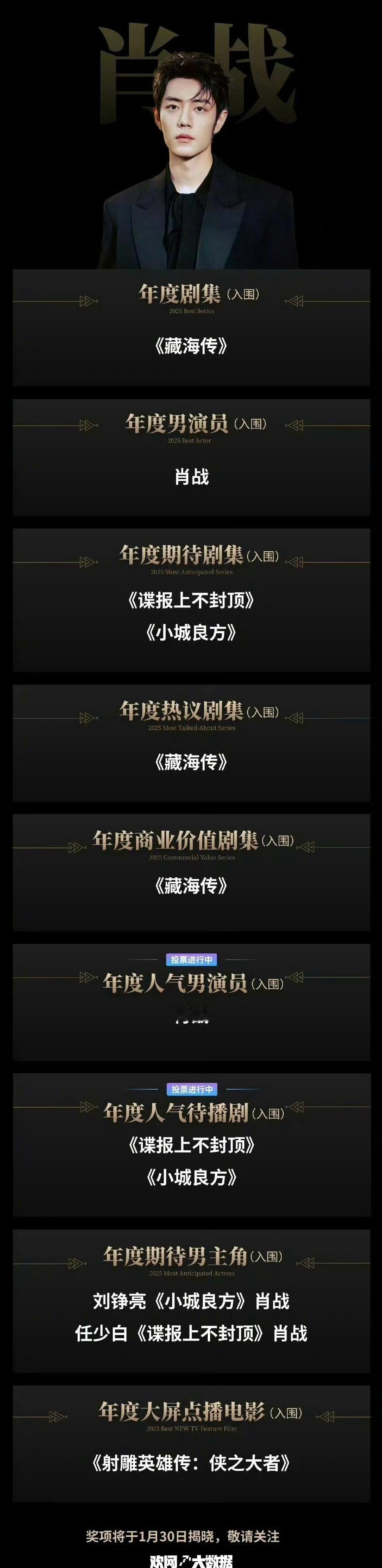 成毅肖战的提名对比!成毅凭3部剧获9项提名
