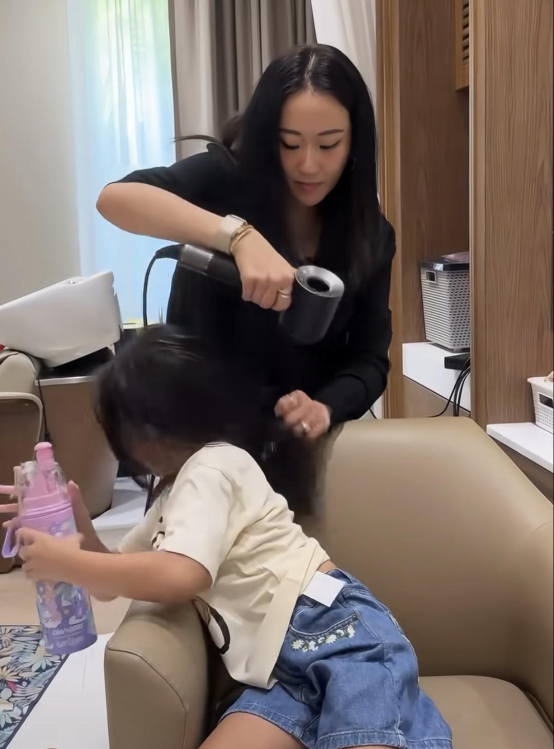 佩通坦对孩子真是太宠溺了!女儿学游泳回来,佩通坦为游完泳的女儿吹头发。小女孩儿太活泼了,也不好好坐着。拿着水杯晃来晃去的。可是佩通坦非常耐心,温柔地为女儿吹发,一声责怪都没有。 成为温柔妈妈的女儿太幸福了!宽容,和谐,有爱,在这样氛围里长大的孩子一定会善待他人啊。 佩通坦曾经是总理,有威严的一面,但是对孩子却柔情似水,充满耐心。这样的妈妈,挺合格啊! 这是1月16日,佩通坦社交媒体晒出的小视频。
