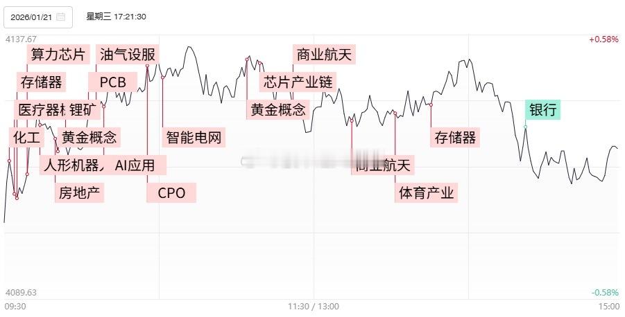 1月21日,今日79股涨停,25股炸板,封板率为76%,锋龙股份16连板,广电电气4连板,江化微3连板,四川黄金5天3板,德才股份6天3板,北交所华维设计30cm首板。市场冲高回落,沪指午后一度翻绿。沪深两市成交额2.6万亿,较上一个交易日缩量1771亿。盘面上,市场热点快速轮动,全市场超3000只个股上涨。板块方面,黄金、油气、半导体、算力硬件方向领涨;银行、煤炭、白酒、家电板块跌幅靠前。截至收盘,沪指涨0.08%,深成指涨0.7%,创业板指涨0.54%。人气及连板股分析连板晋级率降至23.08%,3板以上连板股降至3只。除去锋龙股份晋级16连板,创出全面注册制(2023年4月)以来连板纪录。3进4个股仅有广电电气实现晋级,且该股盘中经历多次炸板并放出巨量,而全天大部分时间封涨停的汉缆股份尾盘遭遇放量炸板。高位股整体表现仍不尽人意,AI应用人气股利欧股份复牌全天遭超100亿元封单封死跌停,国晟科技继续以一字板走出5连跌停,此前一度走出5连板的博菲电气遭遇3连跌停。不过高位股持续低迷的同时,微盘股指数今日却创出历史新高,其中弹性方向情绪率先回暖,其中北证方向连续涌现首板股的同时,超30只20、30厘米个股涨超10%。在当前市场畏高情绪依旧浓重背景下,流动性相对弹性方向或仍有望成为投机资金聚焦对象。今日看盘股票