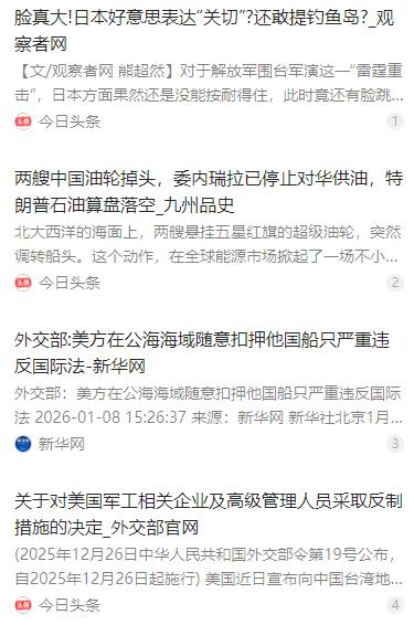 美国在赌,日本在赌。赌中国会不会开第一枪。看看美国扣押游轮,放走俄罗斯的,扣押我们的,以为我们会不吭声,这次它赌错了,中国的反击,简直是太漂亮了,接下来看看美国怎么收场,是撤销对台军售,还是一条路走到黑,只要你敢来,我们照样扣你运输船。日本拿台湾说事,拿钓鱼岛说事,日本你有赌的资本吗? 麻烦看官老爷们右上角点击一下“关注”,既方便您进行讨论和分享,又能给您带来不一样的参与感,感谢您的支持! 美国的操作堪称双标典范,2025 年 12 月,在加勒比海和北大西洋海域,美军接连扣押了多艘计划装载委内瑞拉原油运往中国的油轮,其中就包括 “船长” 号 “世纪” 号等,船上动辄装载数百万桶原油,被押往美国本土卸货没收。 同一时期,有多艘俄罗斯油轮在相关海域活动,美方却视而不见,放任其通行。这种区别对待的行径,说白了就是针对性打压中国,觉得能通过能源封锁拿捏我们。 更过分的是,就在扣船事件闹得沸沸扬扬时,美国国务院宣布批准价值 110 亿美元的对台军售,这笔金额创下了美国对台军售的历史之最,虽然还需国会批准,但挑衅意味已经拉满,严重违反一个中国原则和中美三个联合公报。 美国之所以敢这么肆无忌惮,就是赌中国为了局势稳定会选择妥协,不敢真的撕破脸。可他们忘了,中国在主权和核心利益问题上,从来没有退让的余地,所谓的 “不吭声” 不过是他们一厢情愿的幻想。 跟着美国煽风点火的日本,更是没看清自己的分量。日本防卫省早有计划,2025 年 11 月底就宣布要在与那国岛部署中程防空导弹,这座岛屿距离中国台湾仅 110 公里,明显是冲着台海局势来的。 日本首相高市早苗上任后更是口出狂言,宣称台海冲突可视为日本 “存亡危机事态”,暗示要武力介入,直接把中日关系推向紧张。在钓鱼岛问题上,日本也没闲着,频繁派渔船非法闯入我领海滋事。 根据日本方面的统计,2025 年中国海警船在钓鱼岛附近海域出现的天数达到 356 天,创下历史新高,这背后正是日方不断挑衅倒逼我们加强维权执法的结果。日本以为抱住美国大腿就能狐假虎威,却忘了自己根本没有赌的资本。 面对美日的联合挑衅,中国没有丝毫犹豫,反击迅速且精准。针对美国的对台军售,全国人大外委会第一时间发声警告,不到 24 小时,中国外交部就在 2025 年 12 月 26 日发布公告,对 20 家涉事美国军工企业实施制裁。 这些被制裁的企业包括诺斯罗普・格鲁曼系统公司、波音圣路易斯市分公司等知名企业,中方直接冻结其在华境内的动产、不动产和其他各类财产,同时禁止国内组织和个人与它们进行任何交易合作。 除此之外,中方还对 10 名相关企业高级管理人员实施制裁,冻结其在华财产,不予签发签证、不准入境,这一记重拳直接打在了美国军工企业的痛处,让它们为插手台湾问题付出了实实在在的代价。 对于美国扣押油轮的非法行径,中国外交部多次严正交涉,明确指出美方在公海随意扣押他国船只严重违反国际法,中方一贯反对这种缺乏国际法依据的非法单边制裁。 在钓鱼岛方向,中国海警的应对更是坚定有力。2025 年 12 月 2 日,日 “瑞宝丸” 号渔船非法进入我钓鱼岛领海,中国海警舰艇依法采取必要管控措施并警告驱离,用实际行动捍卫领土主权。 国防部也专门对日本发出警告,针对日方在与那国岛部署导弹、炒作中国战机雷达照射等颠倒黑白的行为,中国海军、外交部等多部门接连回击,明确告知日方历史倒车开不得,和平底线碰不得。 中国的一系列反制措施,彻底打破了美日的幻想。美国本想通过扣船和军售施压,却没想到中国直接制裁其核心军工企业,这些企业在华有着不少业务和资产,制裁带来的损失难以估量。 现在美国陷入了两难,是撤销对台军售、停止扣船等挑衅行为止损,还是一条路走到黑继续对抗?如果继续硬刚,只会遭到中方更强烈的反制,后续甚至可能面临其运输船被对等反制的局面。 日本的处境同样尴尬,部署导弹、炒作台海问题并没有吓到中国,反而招致中方的旅游预警、暂停进口水产品等反制措施,自身经济和外交都受到影响。想要军事介入台海,日本既没有足够的实力,也得不到国际社会的支持。 美日的极限施压之所以失算,就是因为他们误判了中国的决心和实力。中国从不主动惹事,但也绝不怕事,在主权和核心利益面前,任何挑衅都只会遭到坚决反击。 中国的反制不是所谓的 “主动挑事”,而是维护国家主权、安全和发展利益的正当防卫,符合国际法和国际道义。我们一再亮明立场,任何分裂国家、干涉内政的行为都将遭到严惩。 现在的局势很明确,美日如果还执迷不悟,继续搞挑衅小动作,只会让自己陷入更被动的境地。中国已经用行动证明,我们有决心、有能力捍卫国家的一切核心利益,任何赌中国不敢反击的想法,最终都会以失败告终。