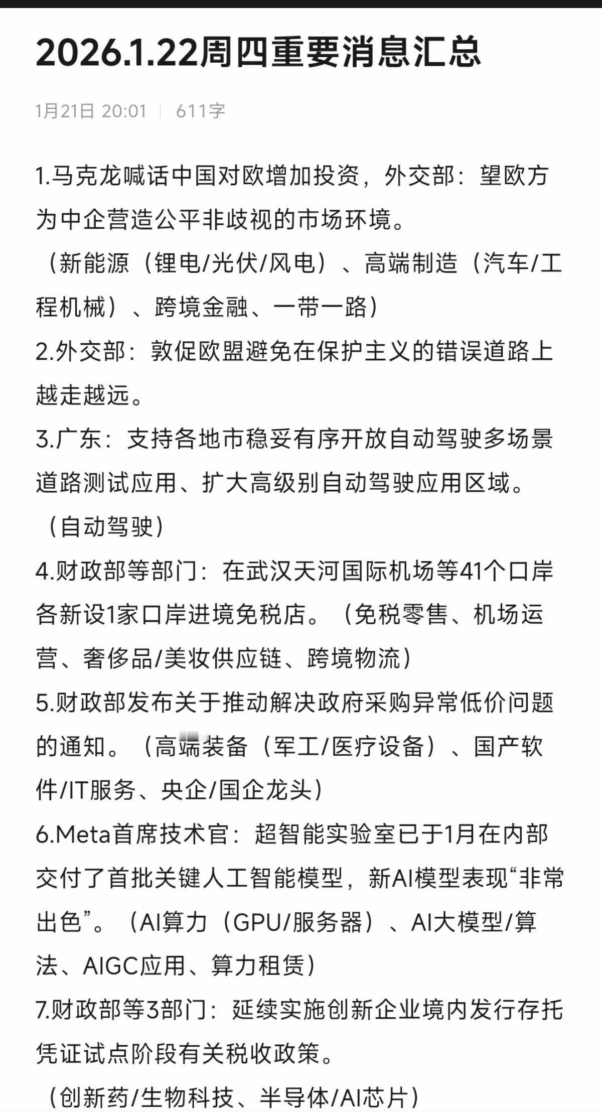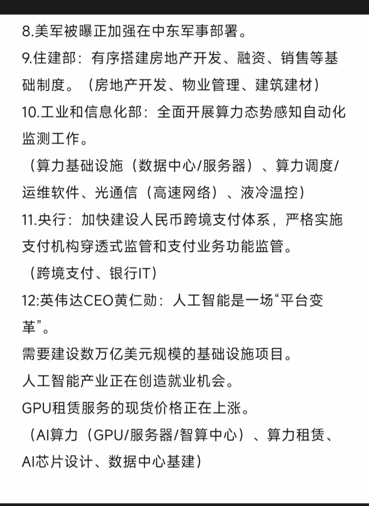 1.22周四 财经热点+题材汇总! 1.新能源,锂矿资源 2.自动驾驶 3.免税店,跨境物流 4.算力,GPU服务器 5.房地产 6.智算中心,数据中心