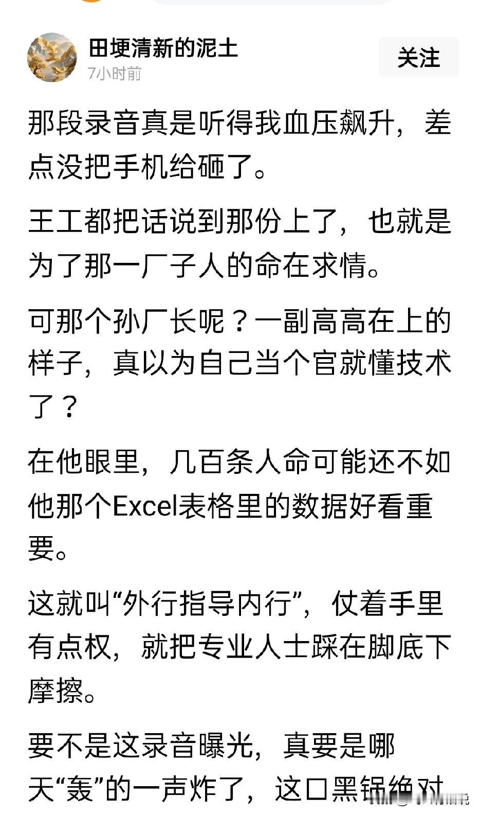 这一次包钢的事,是意外还是人祸,慢慢地越来越清晰 网传录音中的撑过今晚再说,说白了就是没有把安全足够重视 现在,调查组在深入调查,相信会有一个公开公正的结果