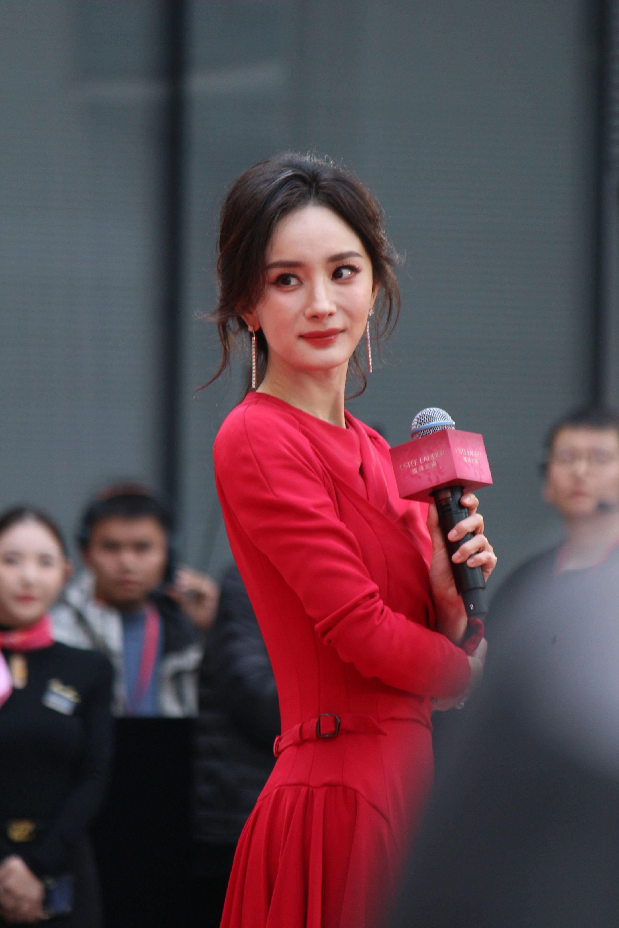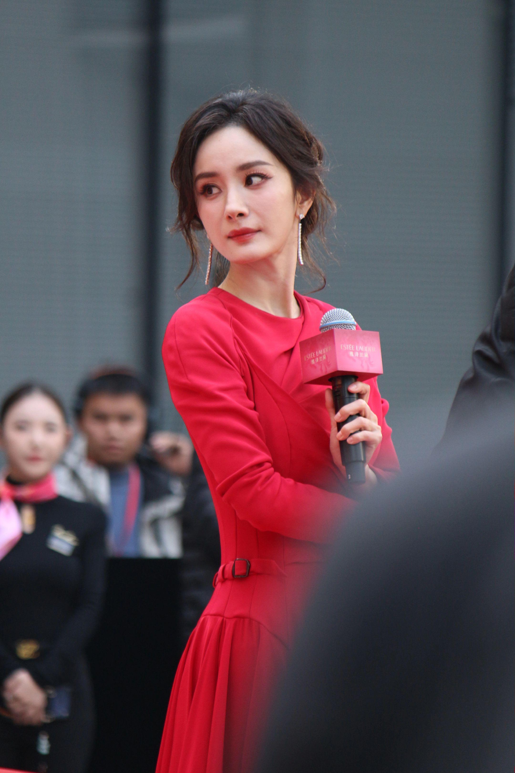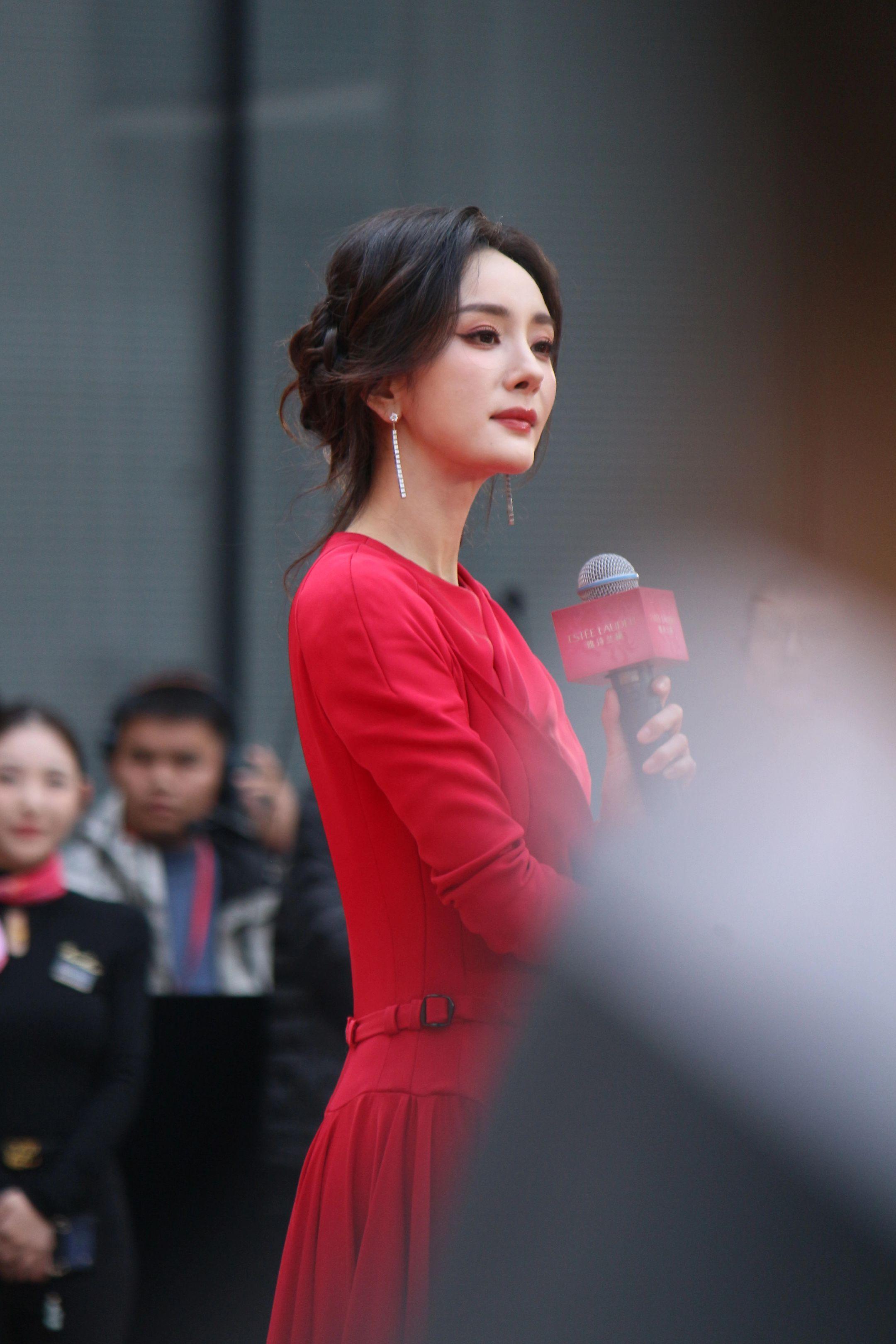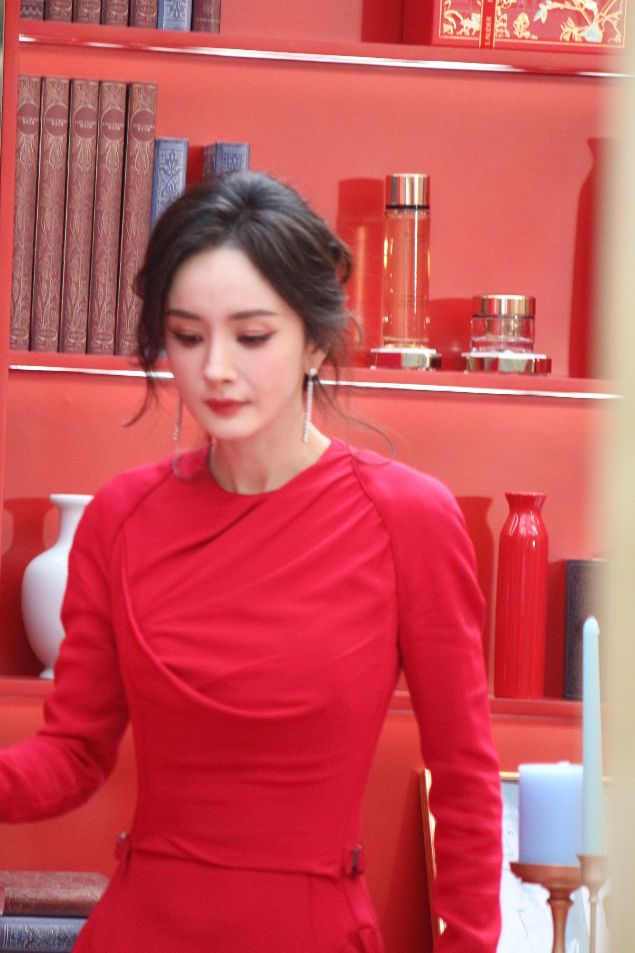 杨幂月牙笑生图。20260115雅诗兰黛活动生图18P明媚红裙好...