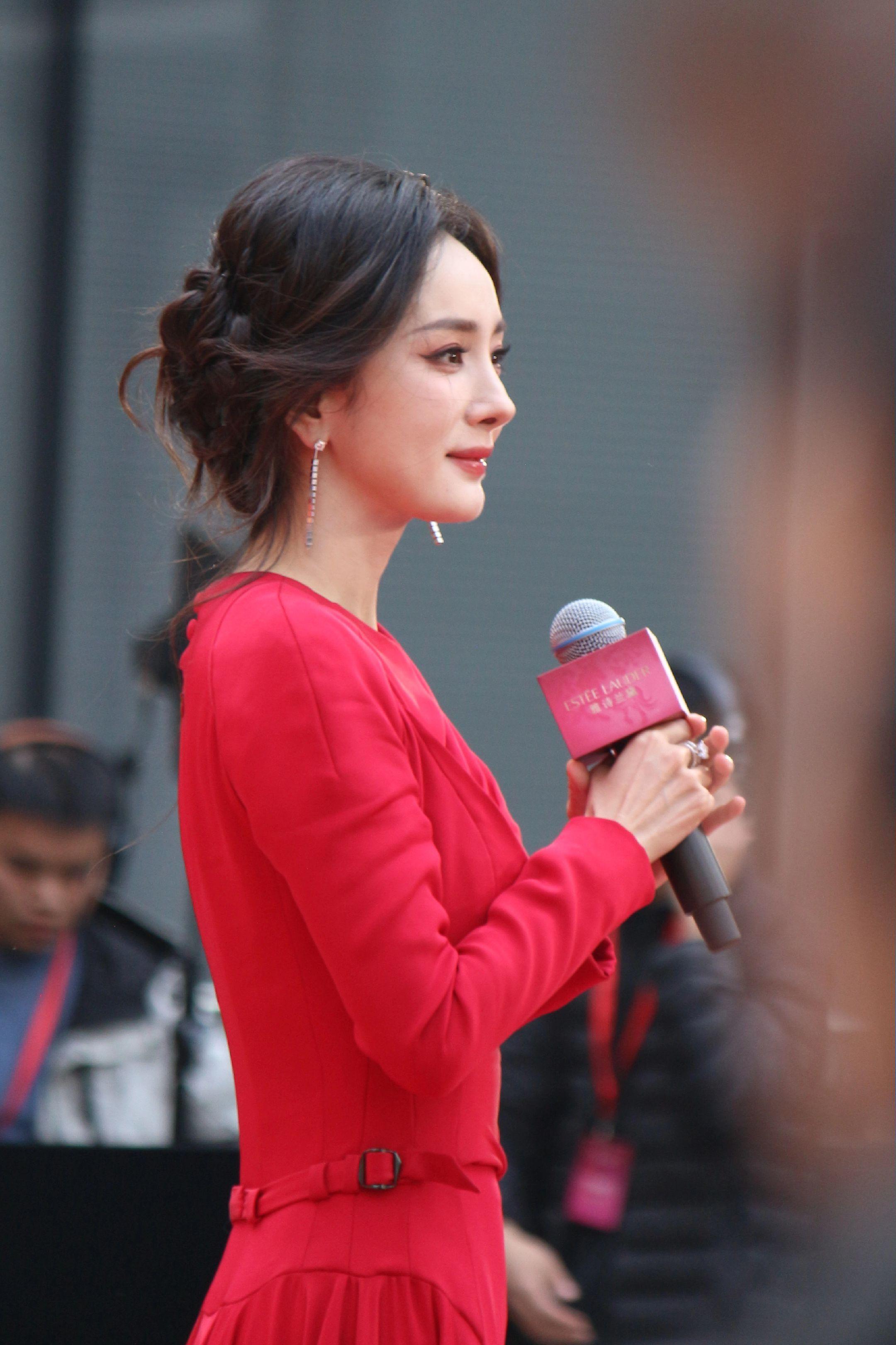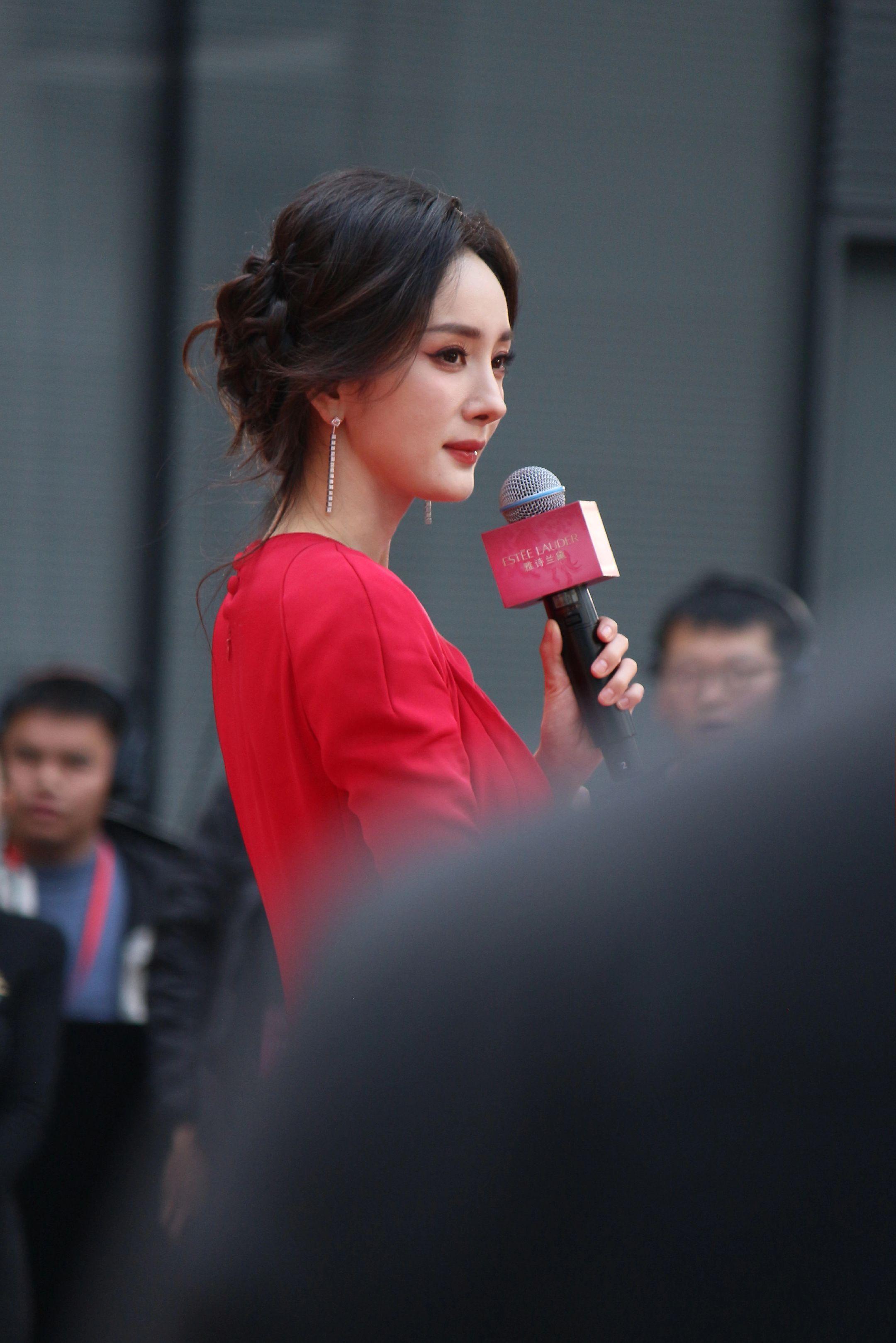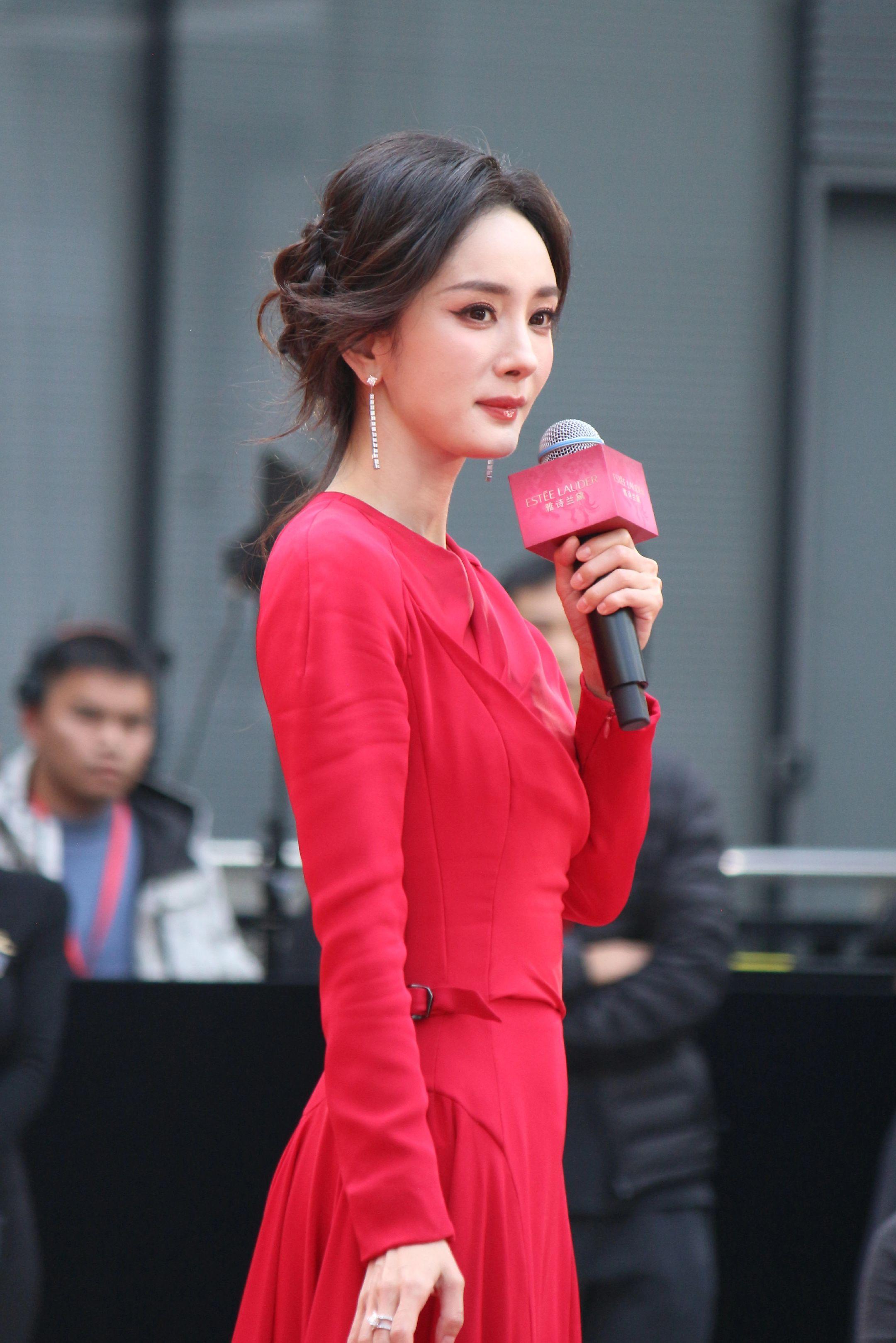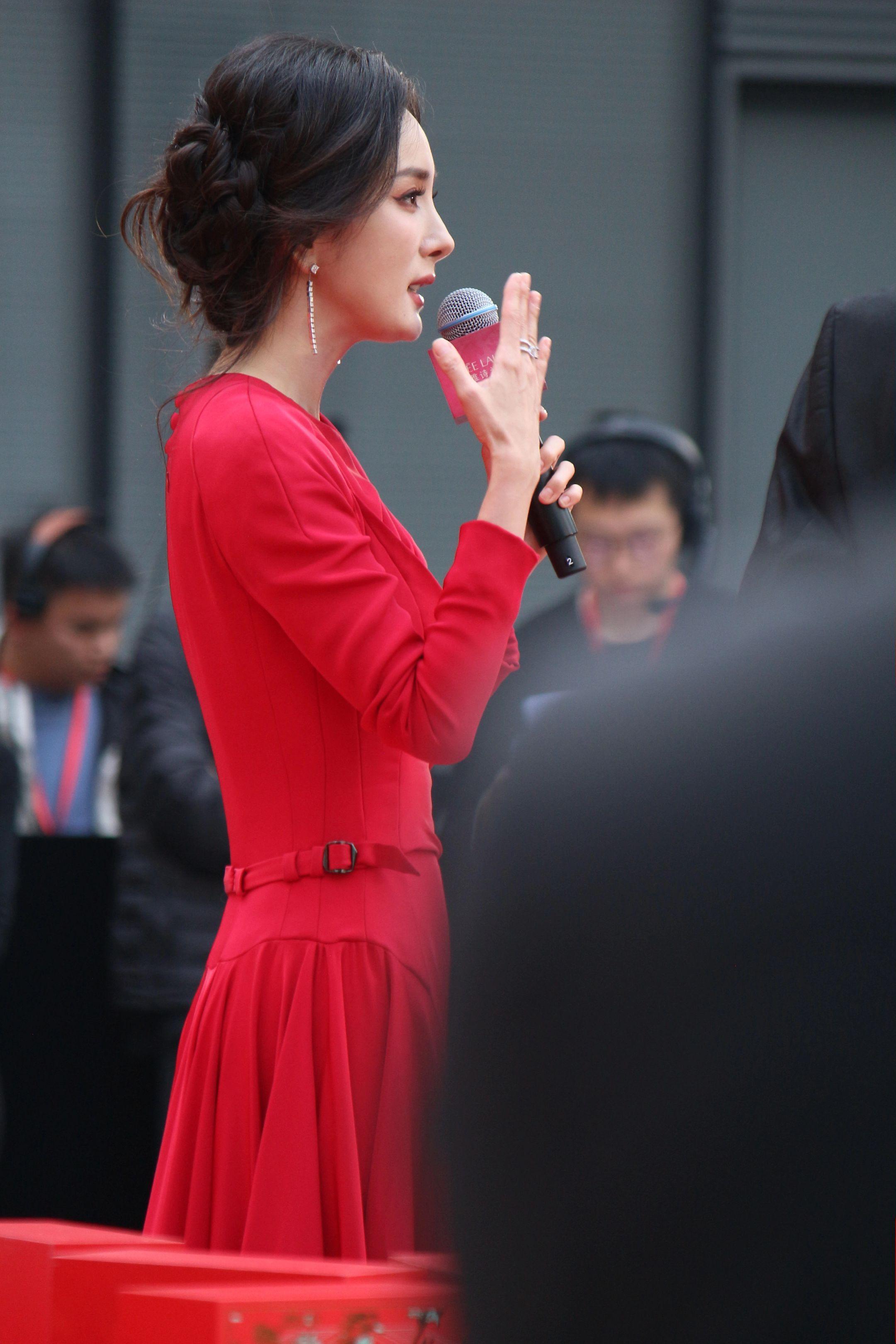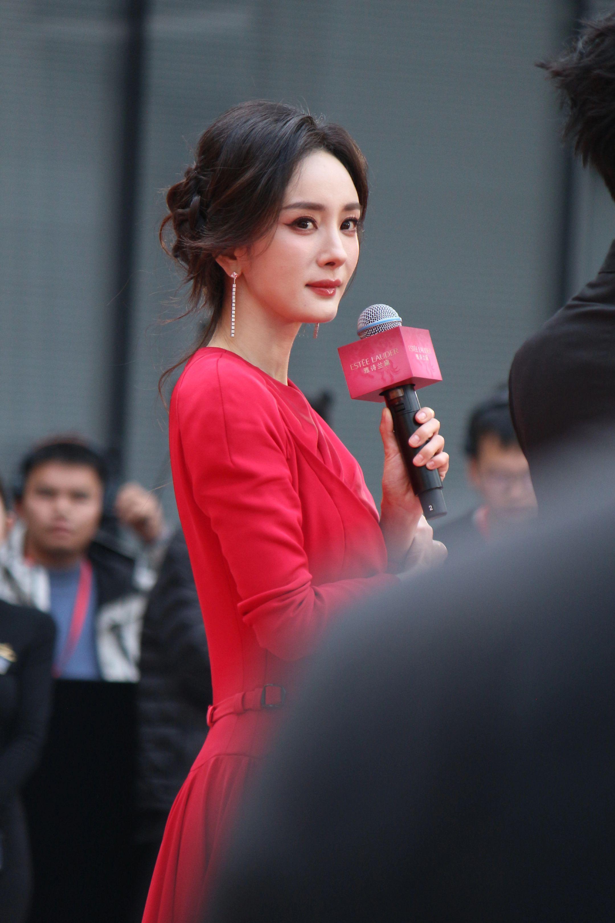 杨幂月牙笑生图。20260115雅诗兰黛活动生图18P明媚红裙好...