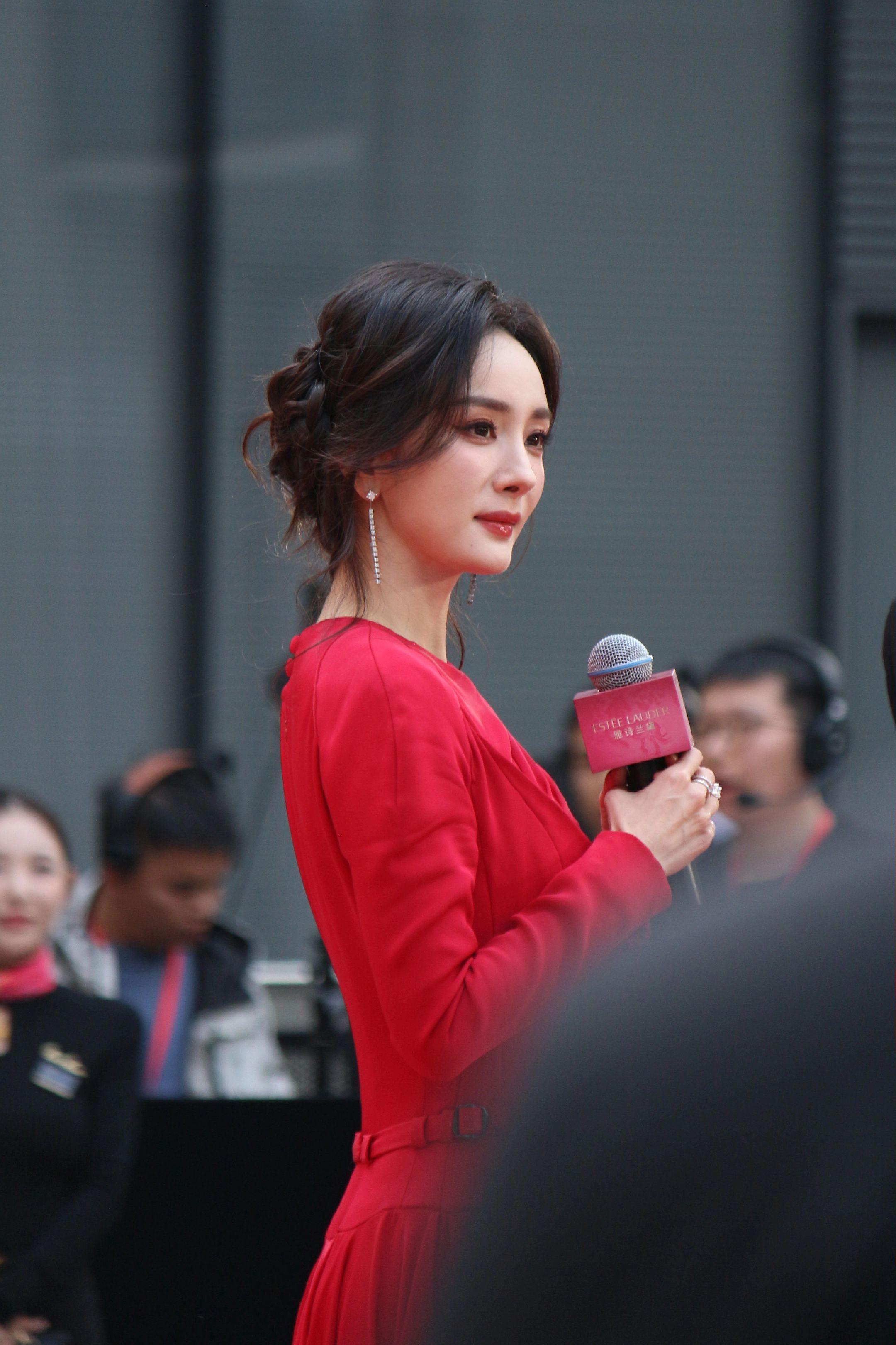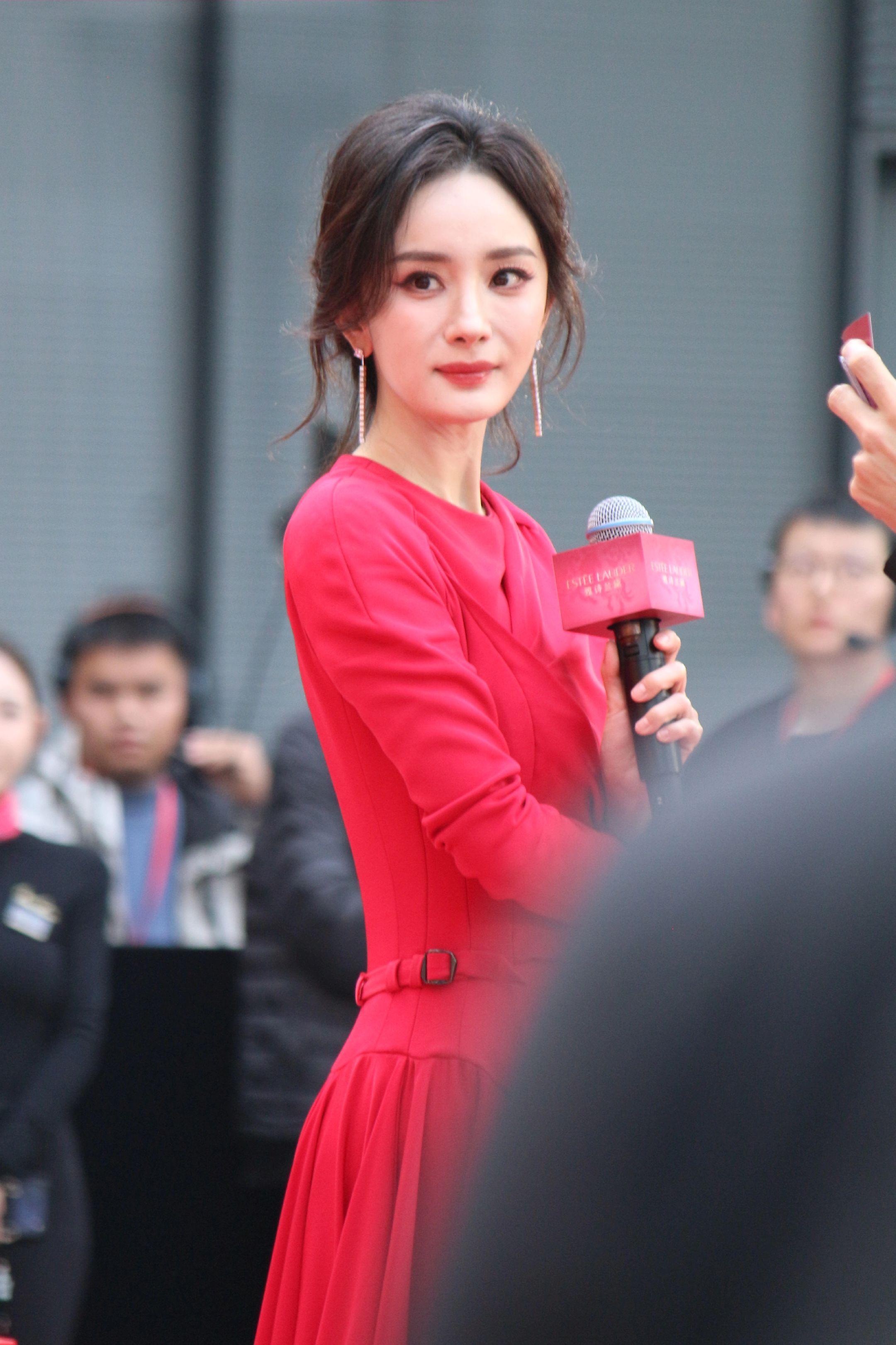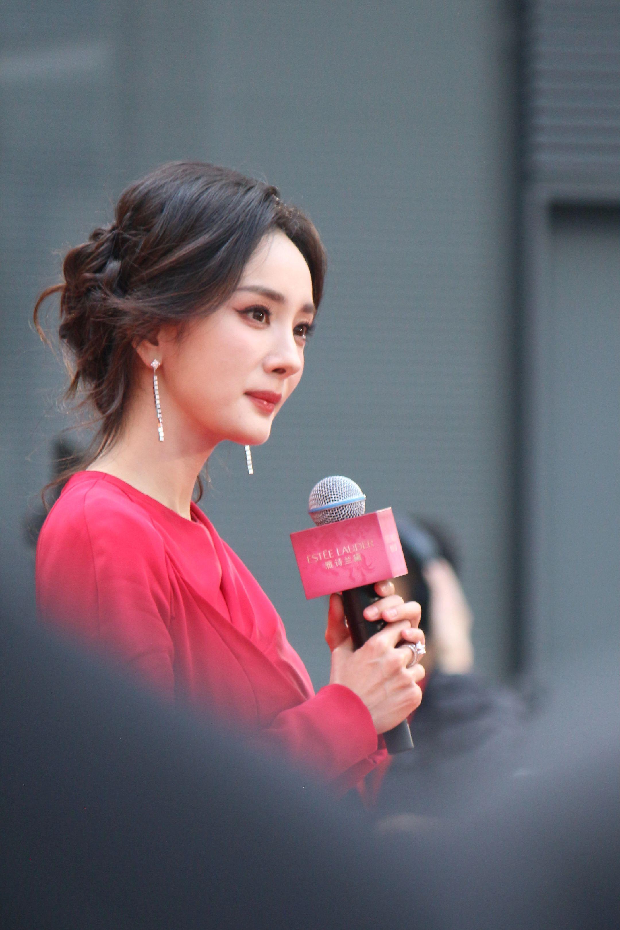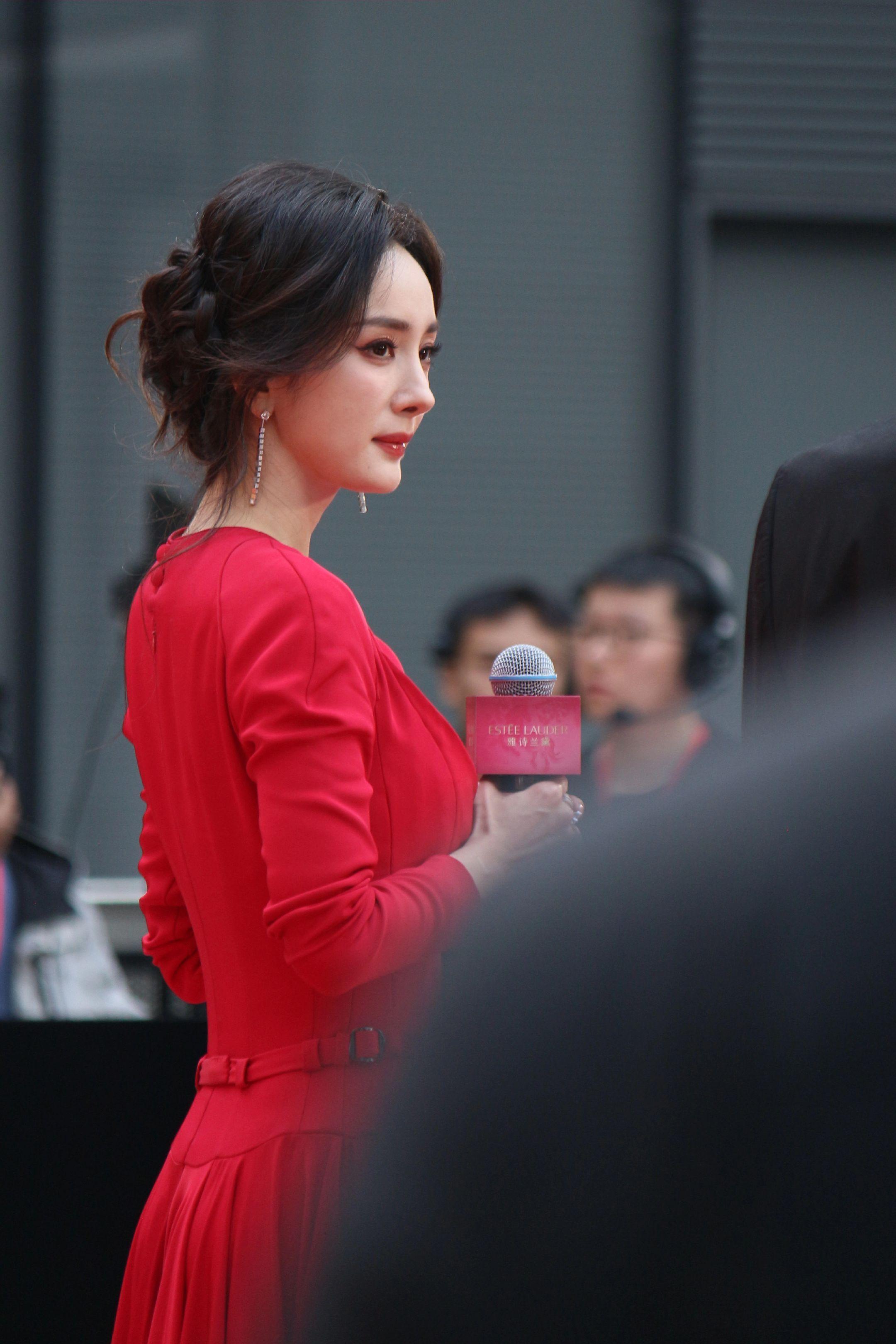 杨幂月牙笑生图。20260115雅诗兰黛活动生图18P明媚红裙好...