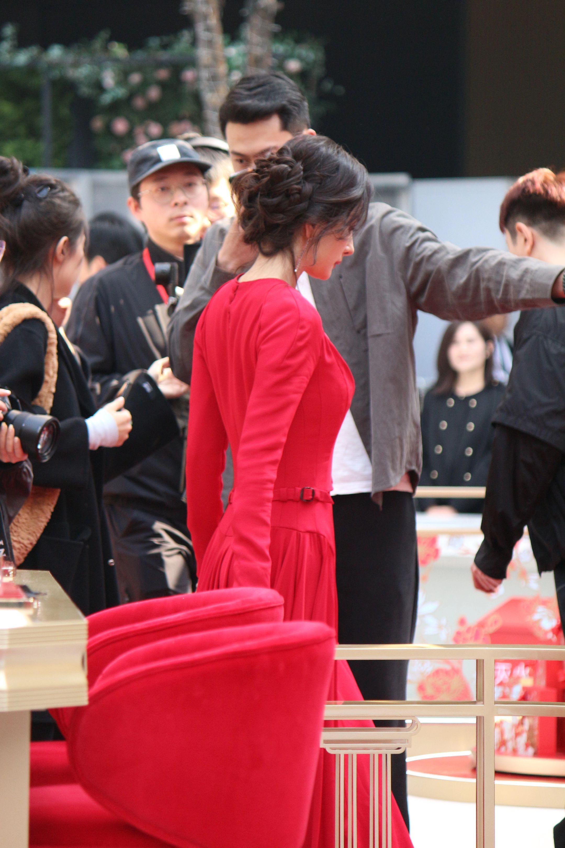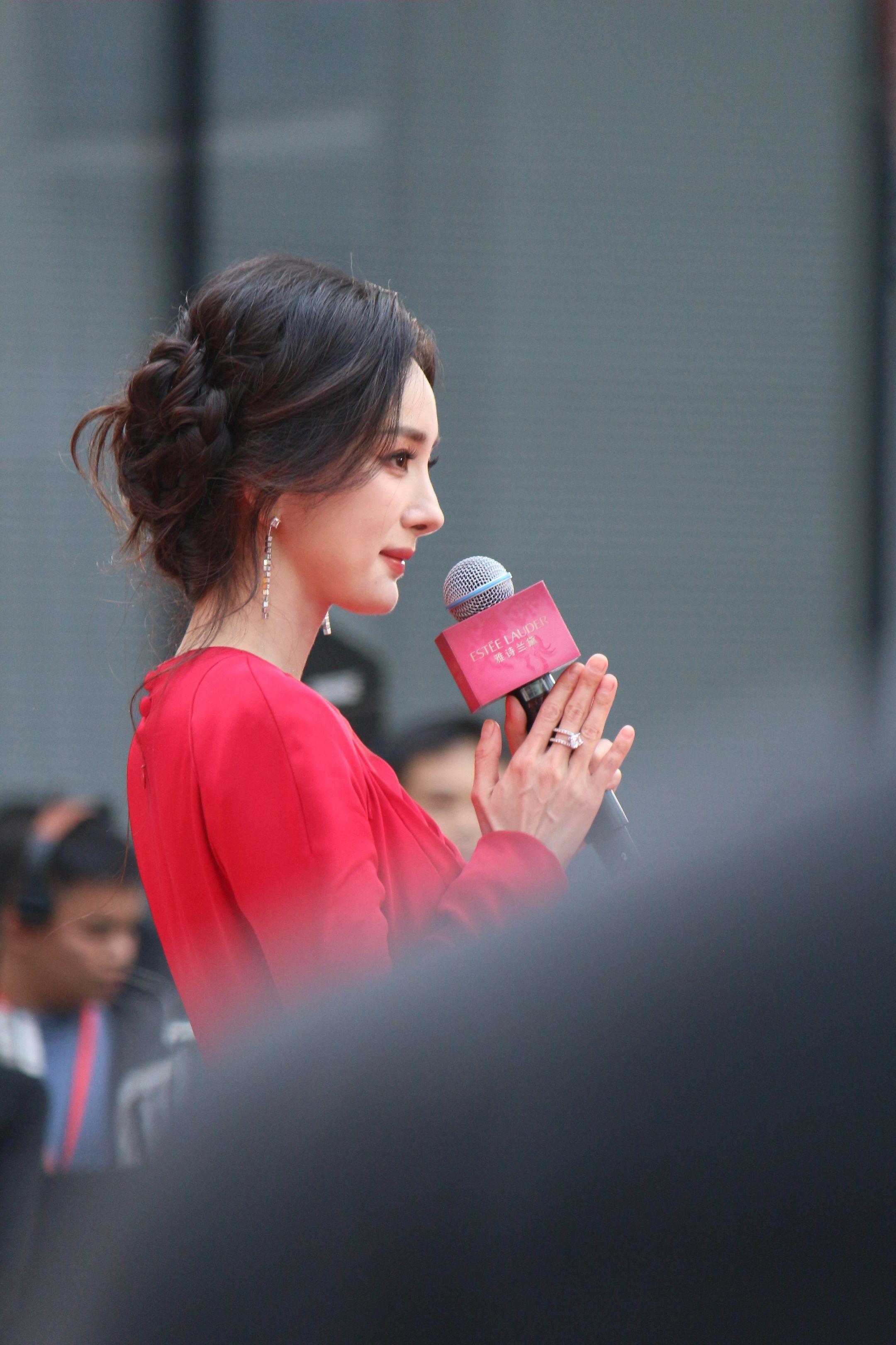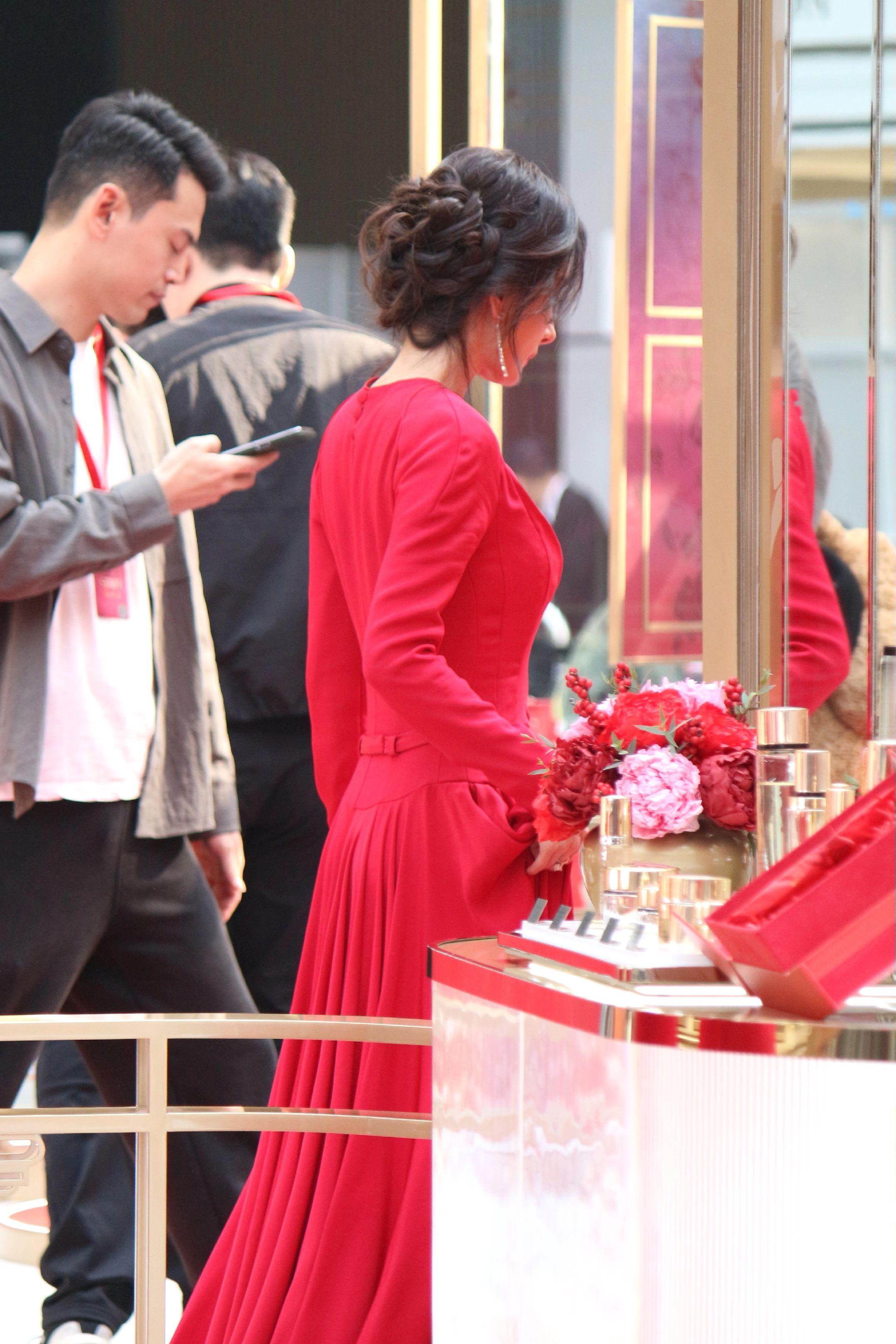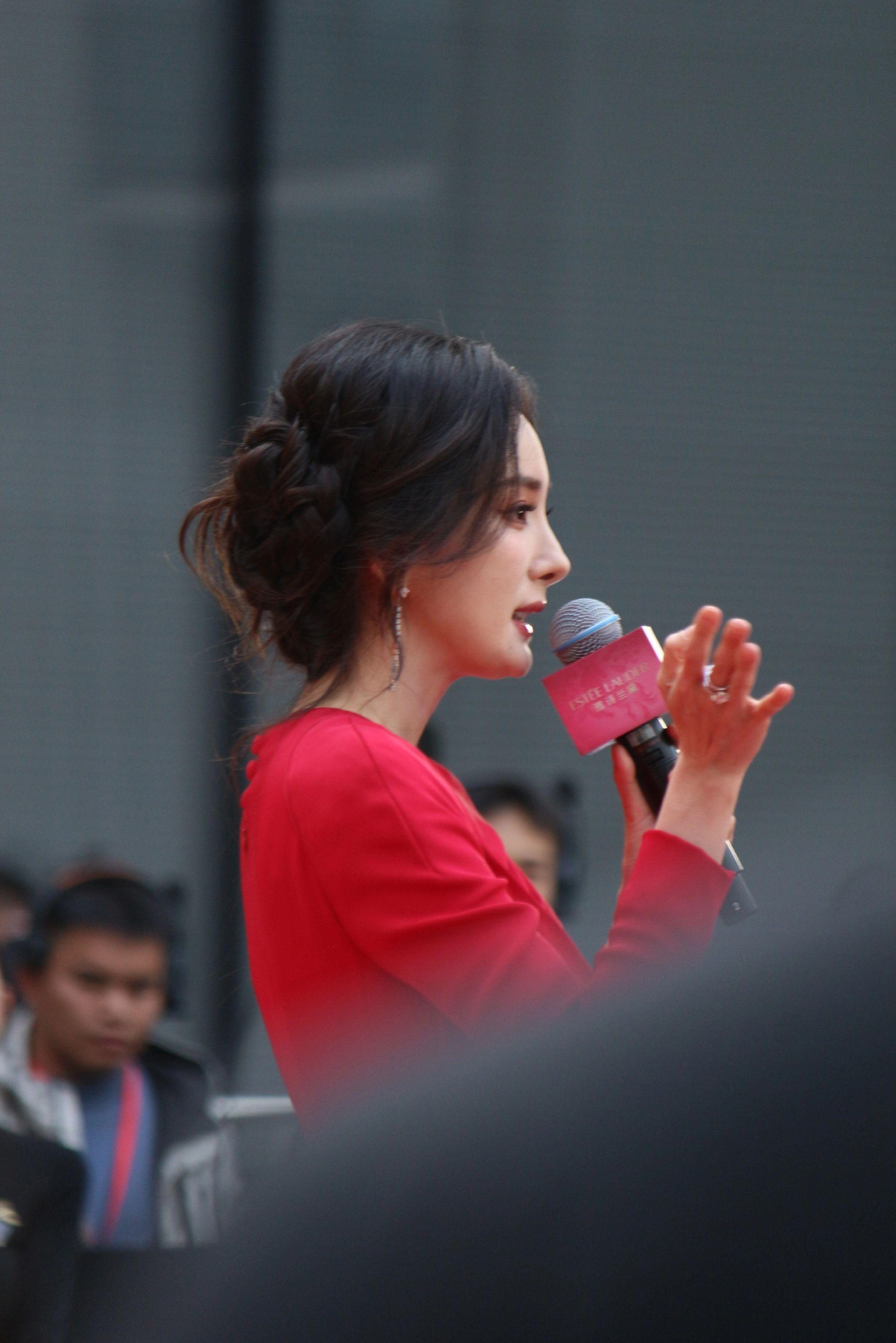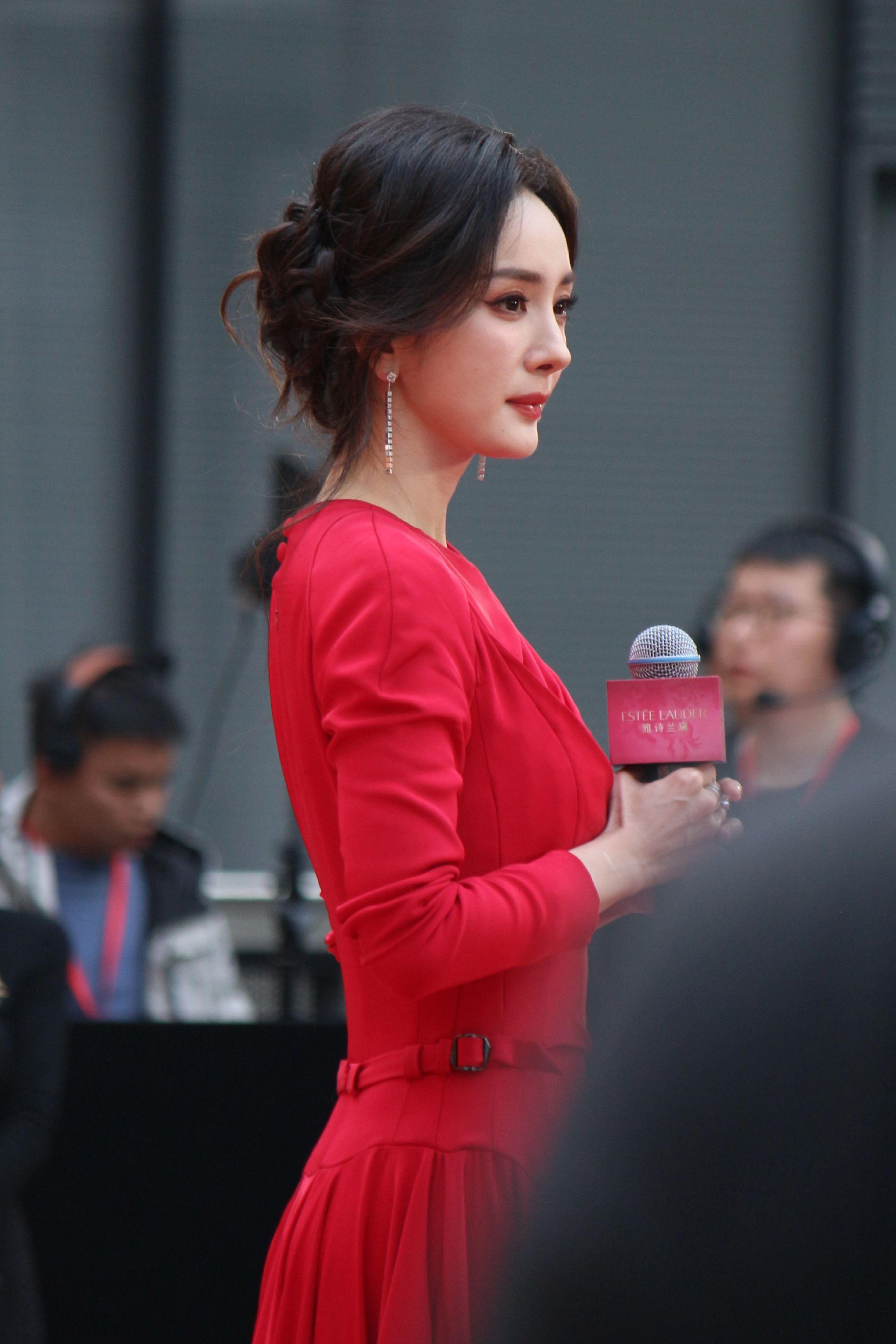 杨幂月牙笑生图。20260115雅诗兰黛活动生图18P明媚红裙好...