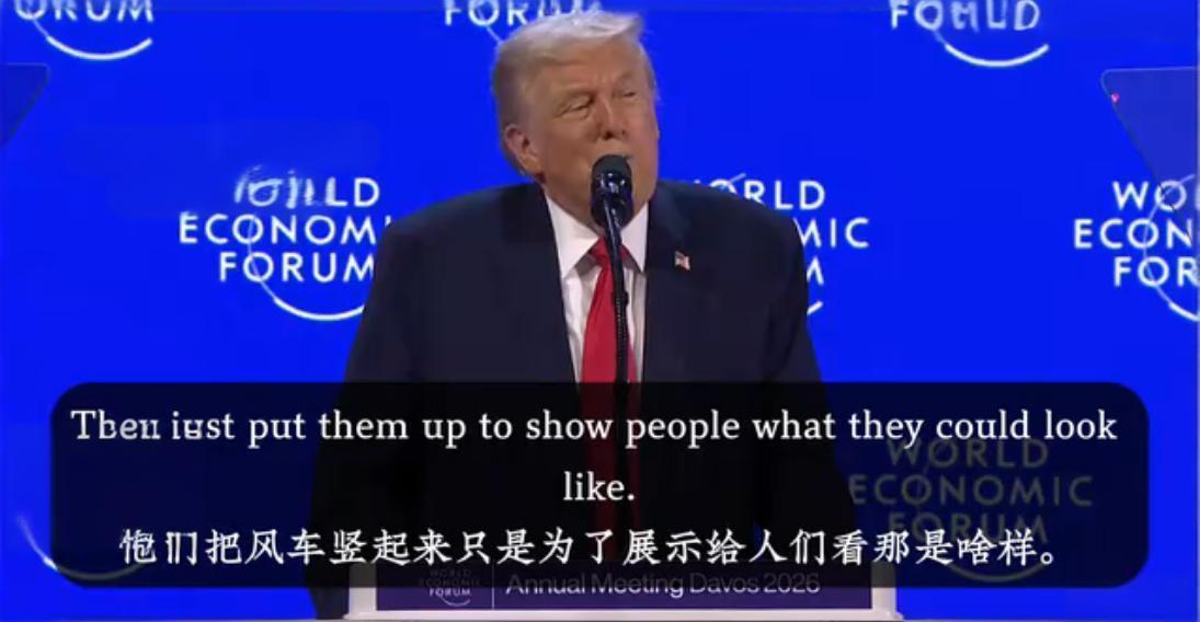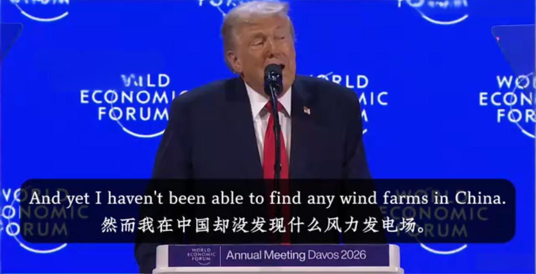 特朗普跑到达沃斯论坛为了推销自己的化石能源,把欧洲国家能源政策骂了一遍的同时,再次造谣风力发电是中国的骗局。 特朗普演讲开头先是歌功颂德了自己的一番成就,话锋一转就推销起美国的化石能源,认为以德国为首的欧洲国家的绿能政策是愚蠢的,绿能发电是中国制造的骗局,就是为了高价把发电设备卖给世界。 为了圆自己的谎还表示,他去中国的时候没有发现什么风力发现场,有几个大型风力发电厂但是并未投入使用,只是建来给人们看以此骗取人们买设备。 什么叫作睁着眼睛说瞎话,这下算是领略到了,他似乎当所有人都是傻子。