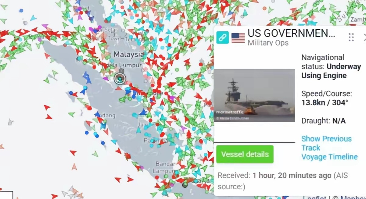 美航母战斗群已穿过马六甲海峡“美航母关闭应答器,战机从英国起飞”!由于美国与伊朗关系的高度紧张,美军正加强在中东军事部署,“林肯”号航空母舰战斗群已驶向中东地区。这是什么信号?