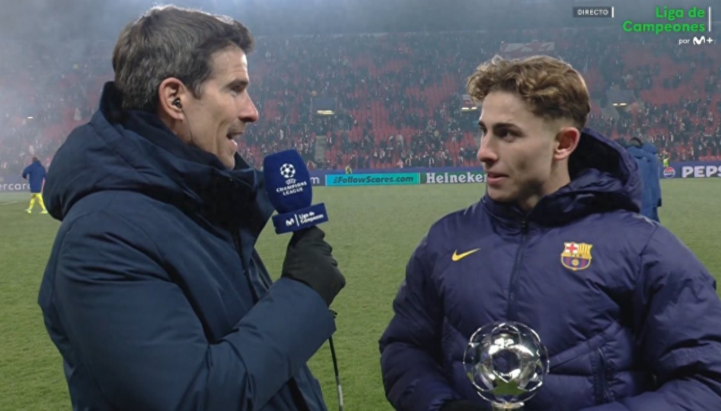 帮助巴萨在欧冠客场4-2逆转布拉格斯拉维亚后,此役梅开二度的费尔明当选全场最佳,赛后他接受了Movistar+的采访。 感受 我们知道这场比赛很难,因为天气很冷,而且他们是主场作战,逼抢非常积极,给我们制造了很大麻烦,我们反超了比分,又被他们扳平,接着我们又一次把比分超出,最终赢下了比赛。 寒冷的天气 在这里踢比赛很难,我的手脚都冻疼了……但是没有借口,我们踢了一场好球,拿到了胜利。 梅开二度 我努力抓住教练给的机会,帮助球队。今天我们踢了一场好球,我们配得上胜利。 当选MVP 希望这样的奖杯以后还有更多,我为当选MVP和赢球感到高兴。 欧冠积分榜的形势 我们知道净胜球很重要,我们想保持零封,很难,但我们拿下了胜利。 佩德里的伤势 我还没和佩德里聊过,他觉得腿筋不太舒服。要等检查后才知道具体情况,希望他没什么大碍,不会缺席太久。 参加世界杯 我想参加世界杯,为了进国家队,我很努力地工作。这是我的梦想,希望我能入选。