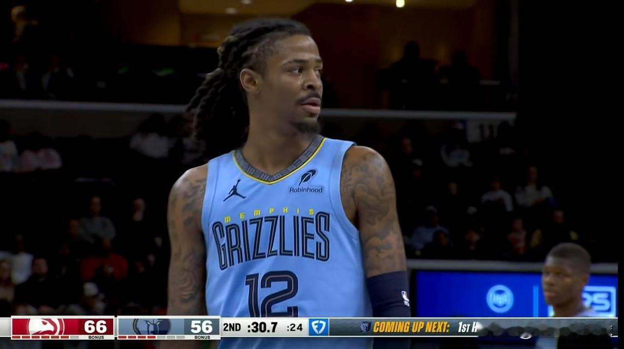 灰熊超级巨星莫兰特真是状态火热!在今天灰熊主场迎战老鹰的比赛中,目前双方半场战罢,虽然灰熊以59:66落后于对手,但是莫兰特的状态却是非常火热。 在前两节比赛中,莫兰特首发出战14分钟,投篮5中3,其中三分球1中0、罚球8中8非常高效的砍下14分,还有1篮板3助攻。 从莫兰特最近两场比赛的表现来看,他确实非常想继续效力灰熊,最近两场比赛莫兰特明显增强了自己的进攻欲望。