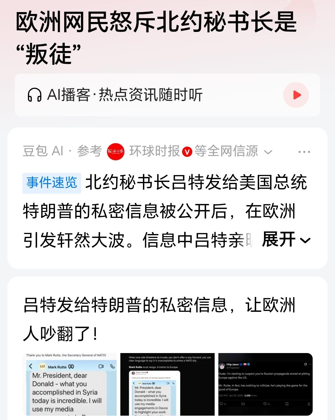 特朗普干了一件和洪森一样的事。洪森公布泰国总理佩通坦和他的私人通话,特朗普则公布了北约秘书长私下给他的短信。 洪森这么干后,被泰国一顿胖揍。 特朗普肯定不在乎,因为他知道他的实力,只要不去招惹那个不能得罪的熊猫,其他国家他都可以随意拿捏。 这么一看,其实他从来就没有胡来,他一直是那个最大的现实主义者。[偷笑] 点右上角关注我我们一起去看这个魔幻的世界